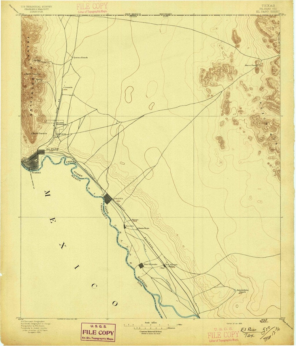 1896 El Paso, TX - Texas - USGS Topographic Map