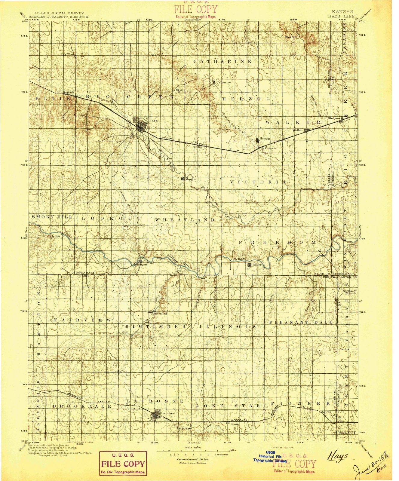1896 Hays, KS - Kansas - USGS Topographic Map