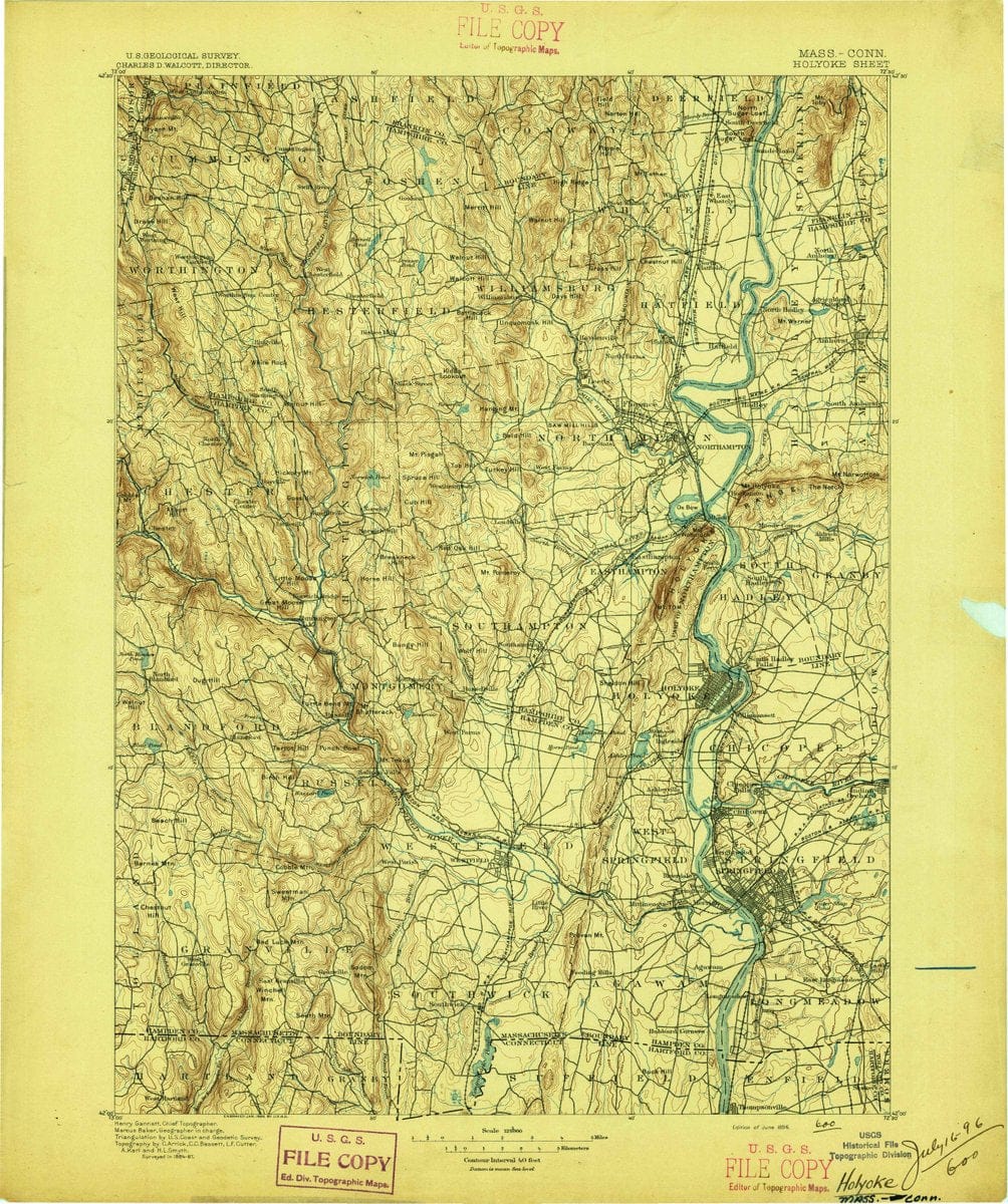 1896 Holyoke, MA - Massachusetts - USGS Topographic Map