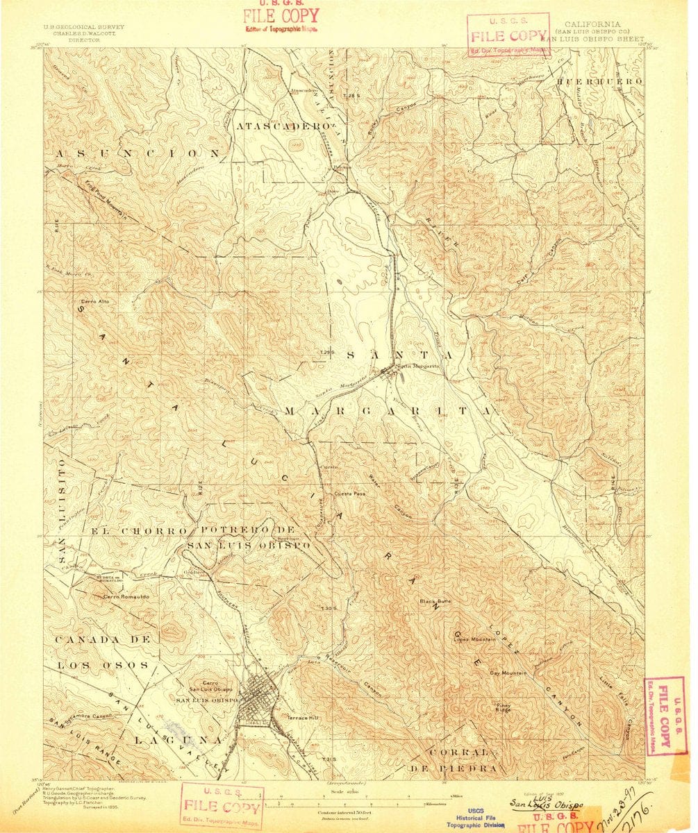 1897 San Luis Obispo, CA - California - USGS Topographic Map