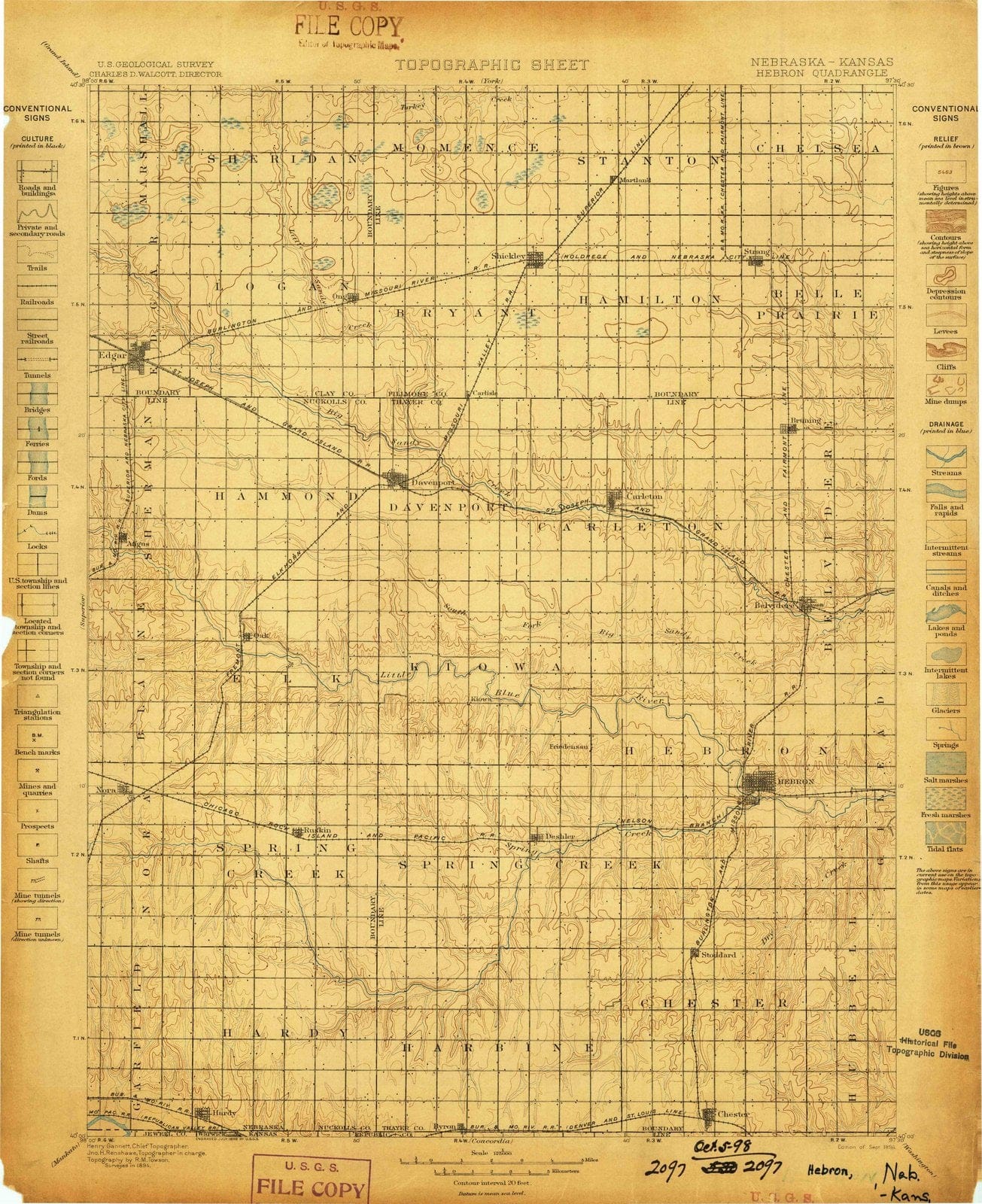 1898 Hebron, NE - Nebraska - USGS Topographic Map