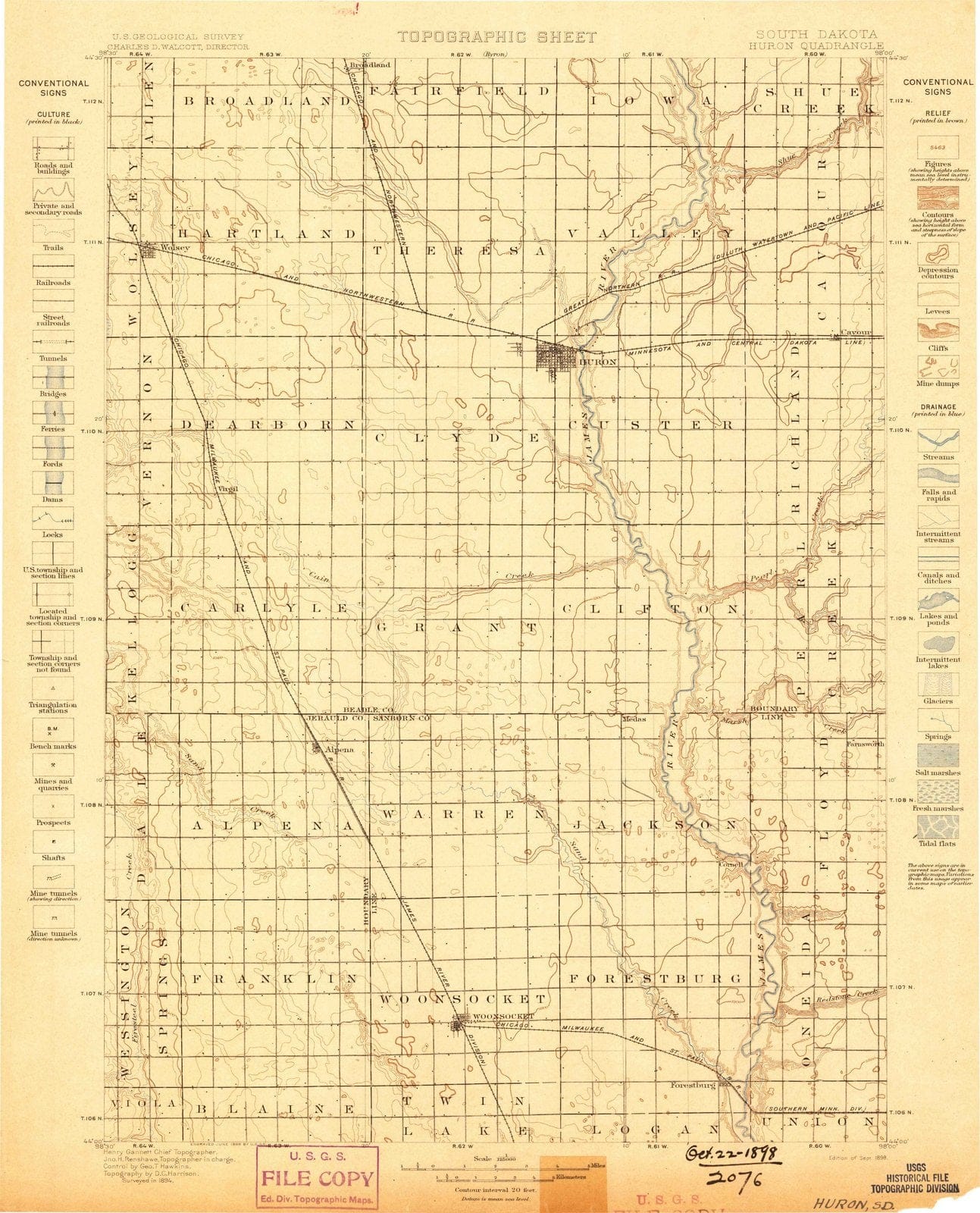 • .1898 Huron, SD - South Dakota - USGS Topographic Map