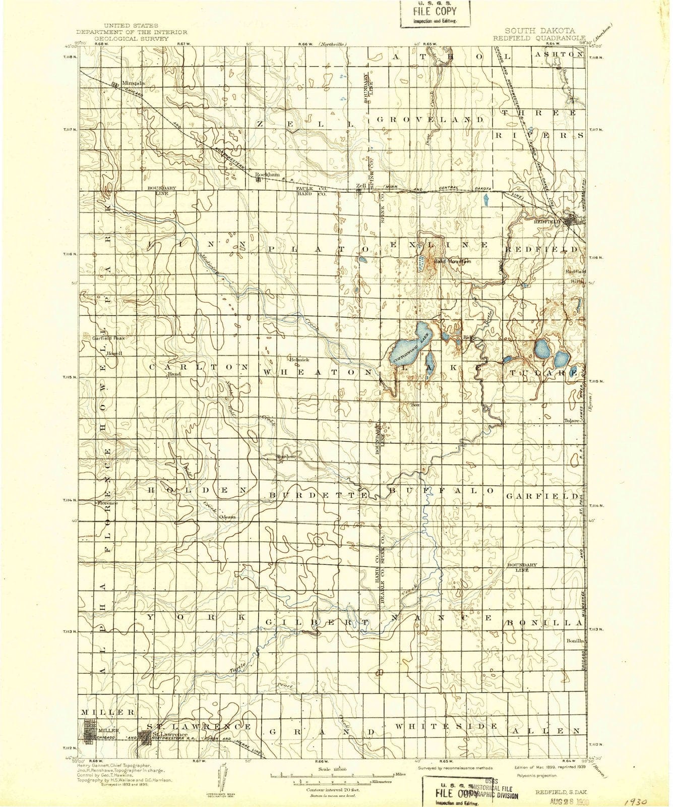 • 1899 Redfield, SD - South Dakota - USGS Topographic Map