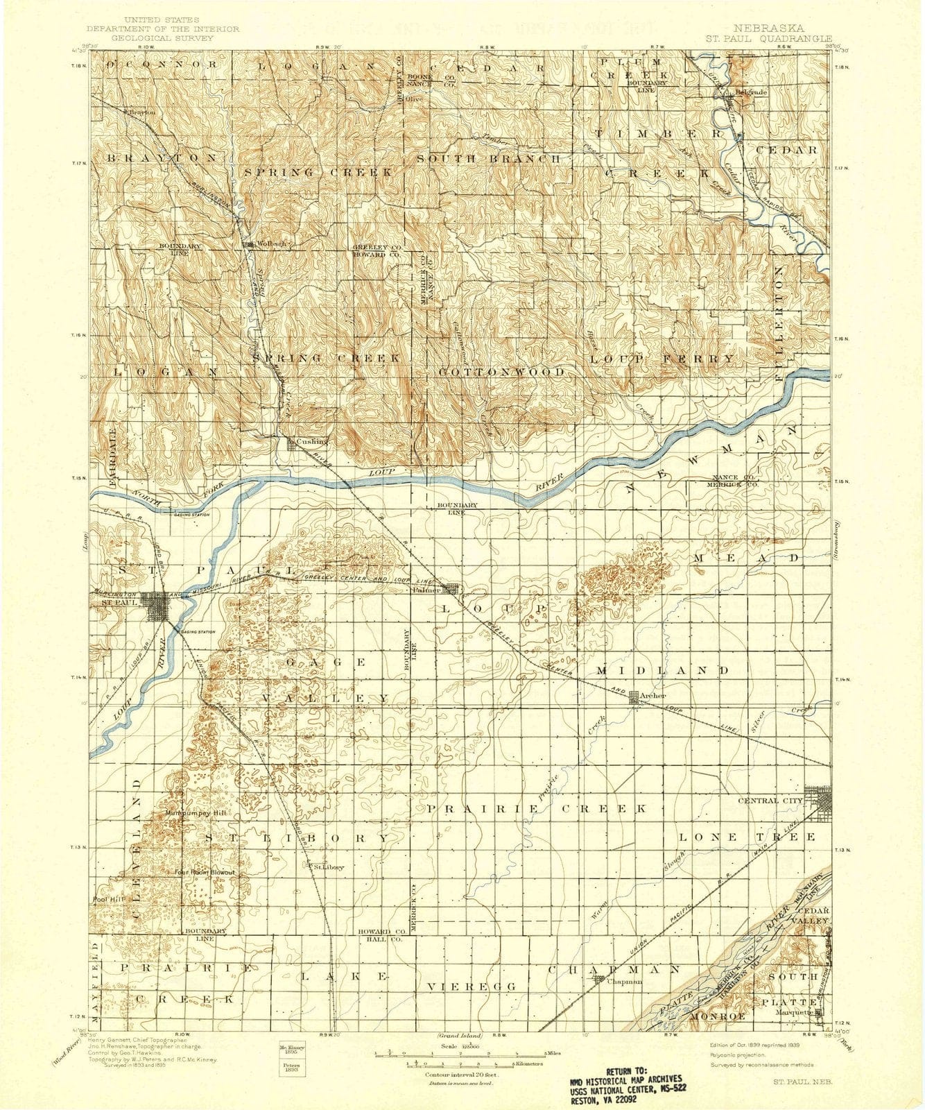 1899 St. Paul, NE - Nebraska - USGS Topographic Map