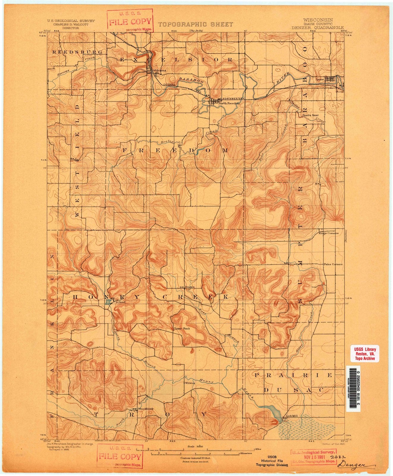 • 1901 Denzer, WI - Wisconsin - USGS Topographic Map