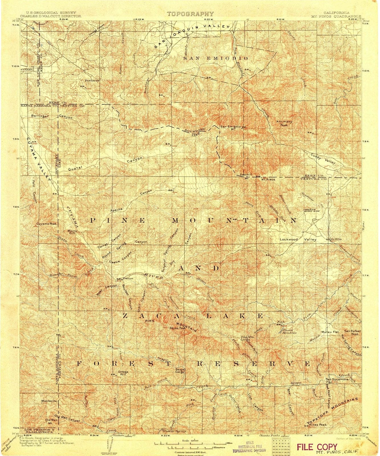 1903 Mt. Pinos, CA - California - USGS Topographic Map