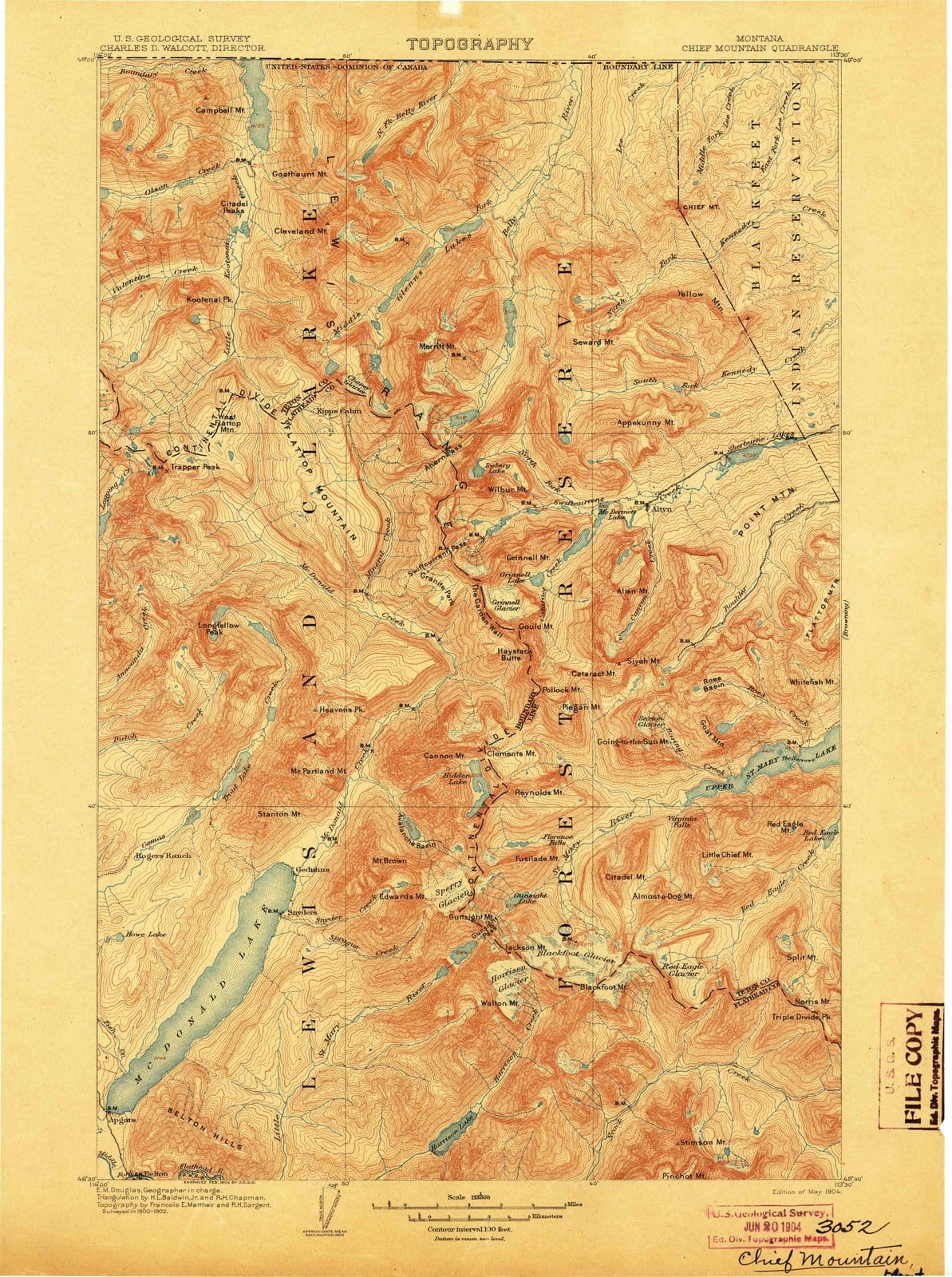 1904 Chief Mountain, MT - Montana - USGS Topographic Map