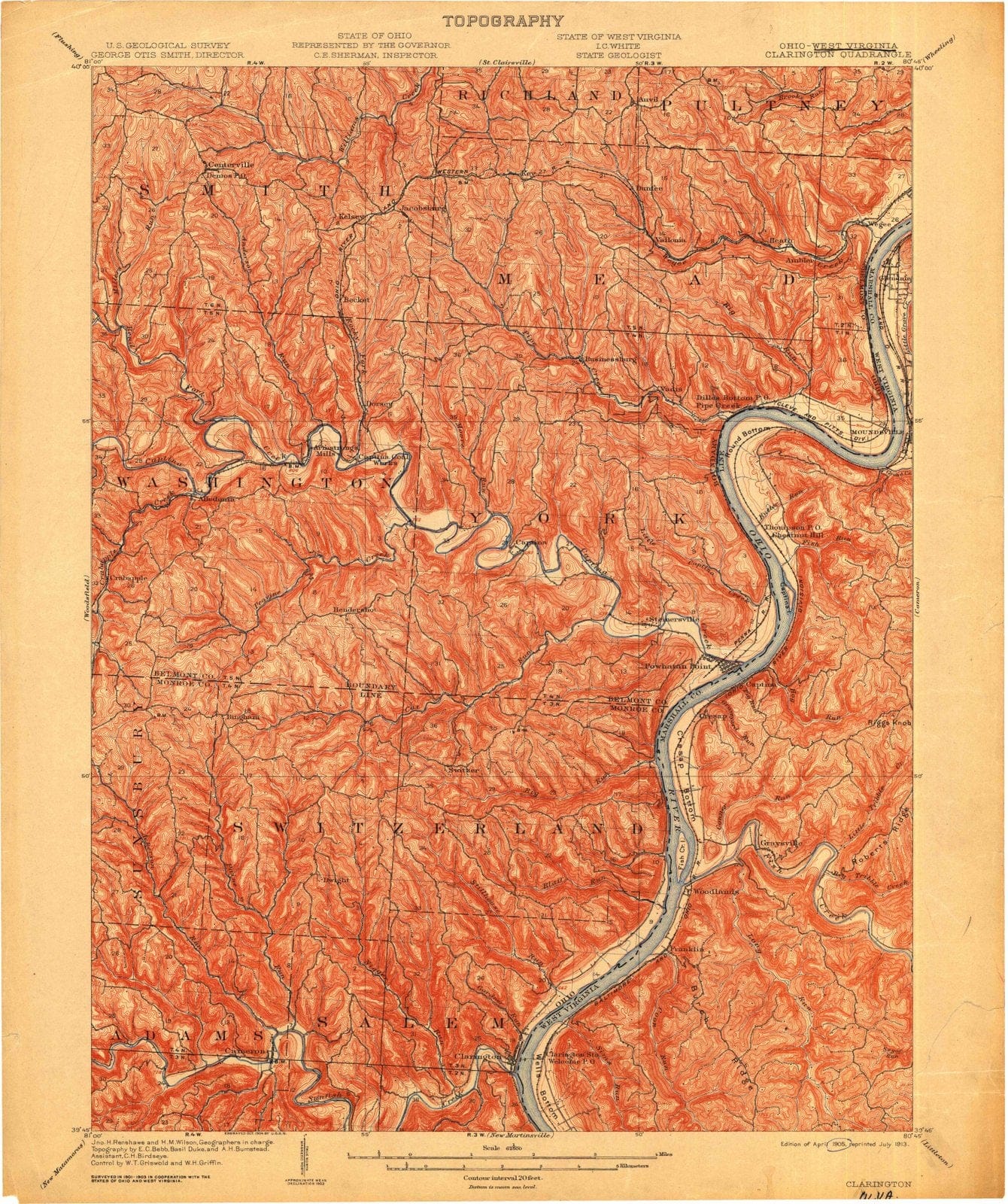 • 1905 Clarington, WV - West Virginia - USGS Topographic Map