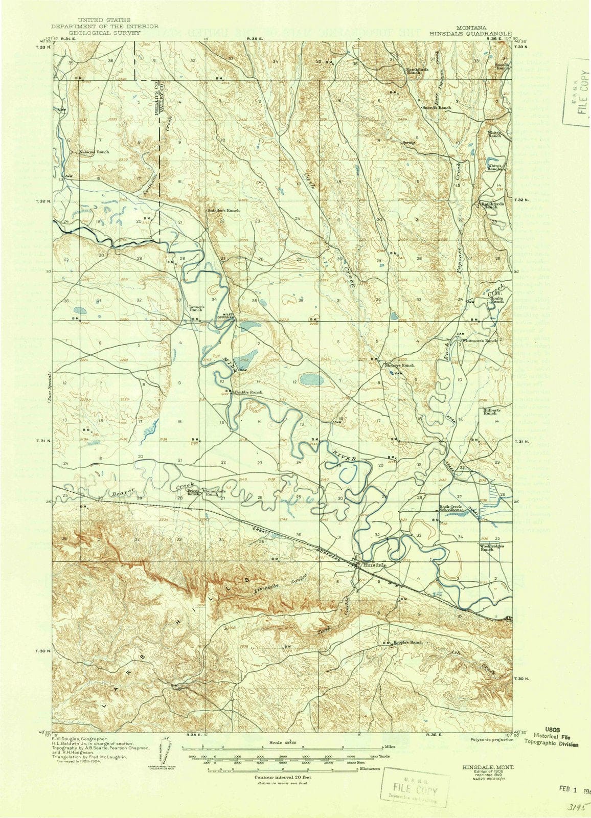 1906 Hinsdale, MT - Montana - USGS Topographic Map