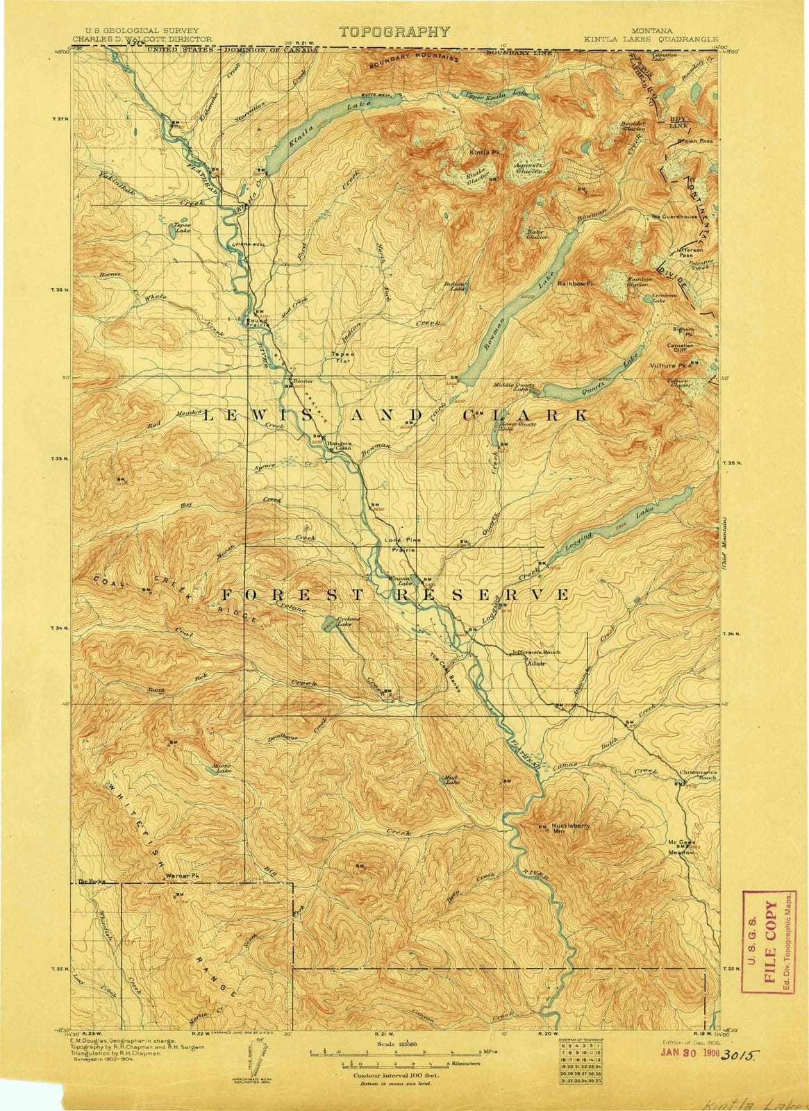 1906 Kintla Lakes, MT - Montana - USGS Topographic Map