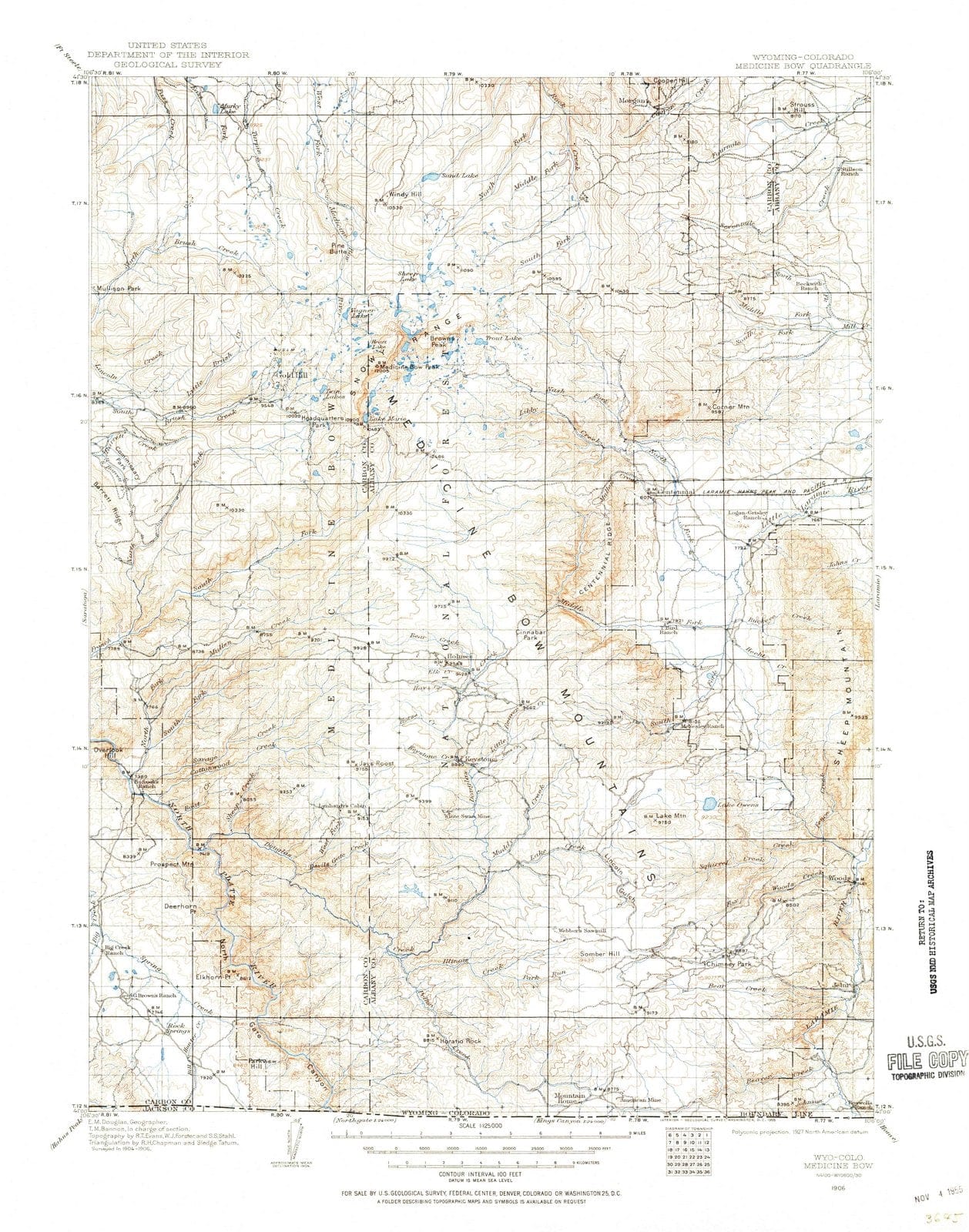 1906 Medicine Bow, WY - Wyoming - USGS Topographic Map
