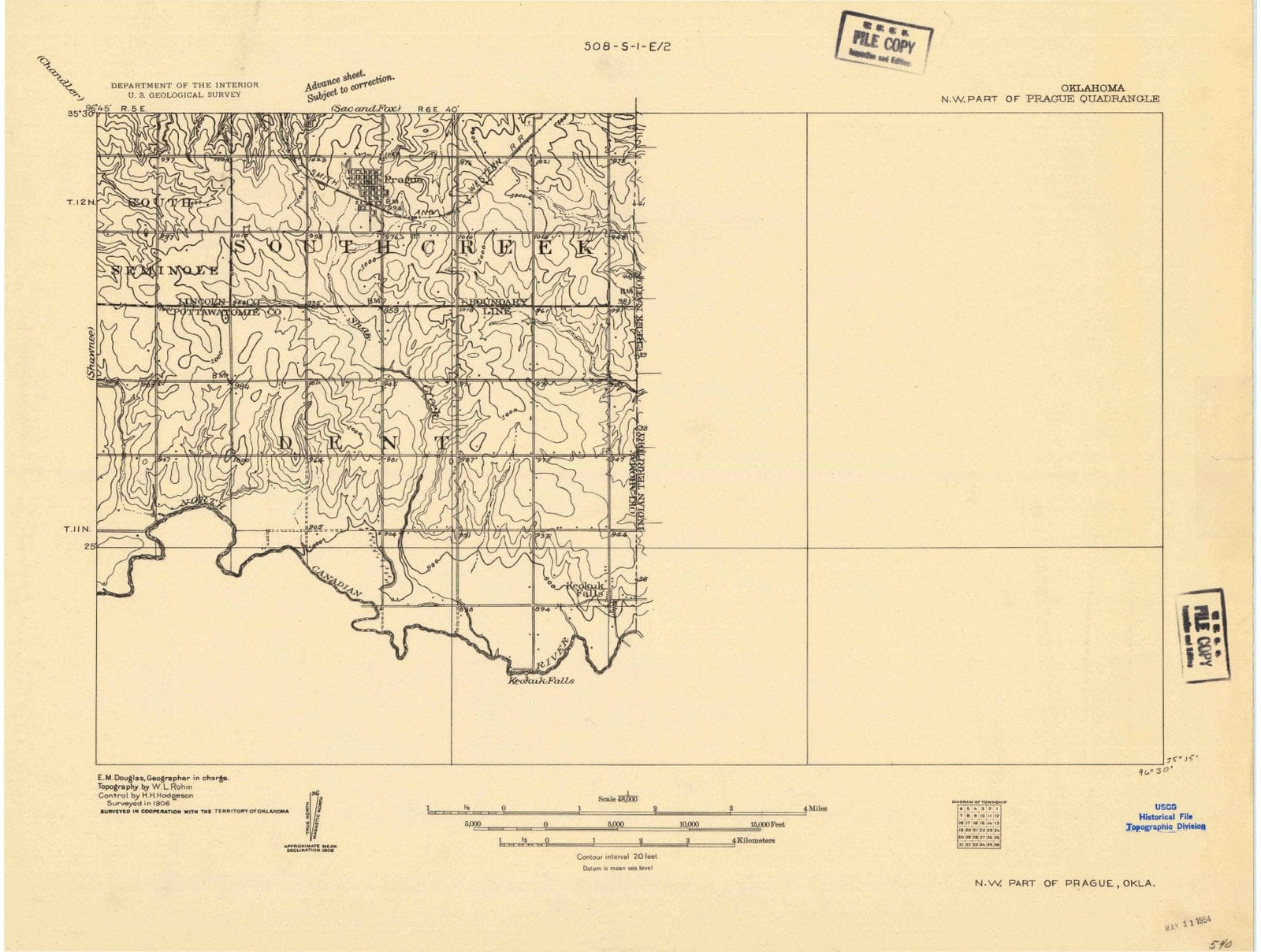 1906 N.W. Part of Prague, OK - Oklahoma - USGS Topographic Map