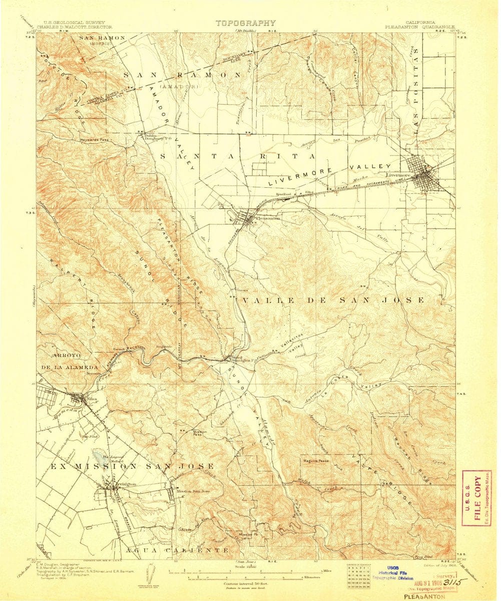 1906 Pleasanton, CA - California - USGS Topographic Map