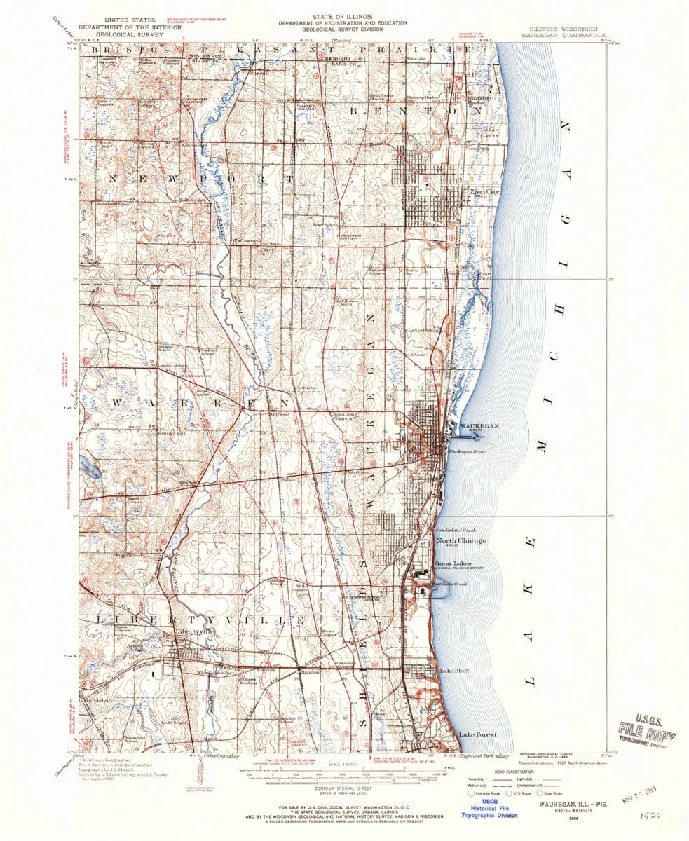 1906 Waukegan, IL - Illinois - USGS Topographic Map