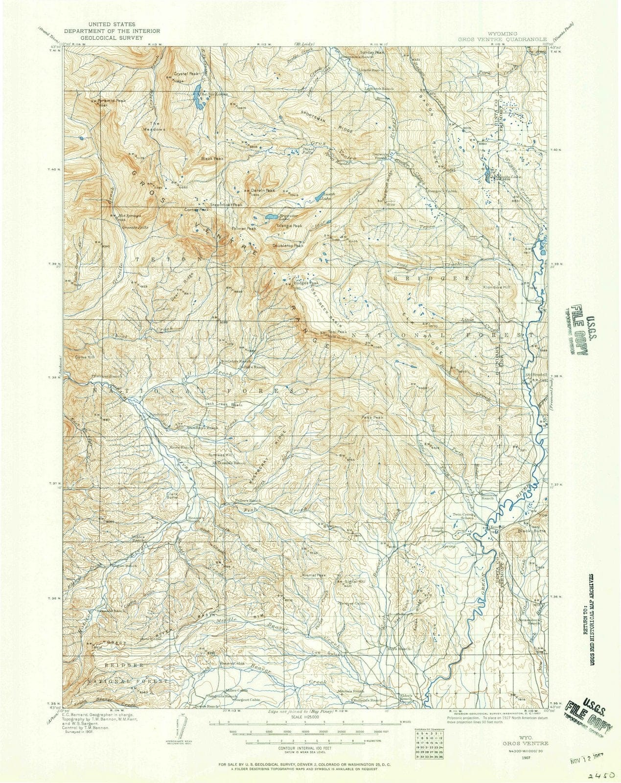 1907 Gros Ventre, WY - Wyoming - USGS Topographic Map