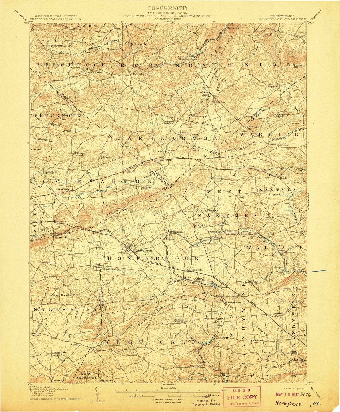 • .1907 Honeybrook, PA - Pennsylvania - USGS Topographic Map