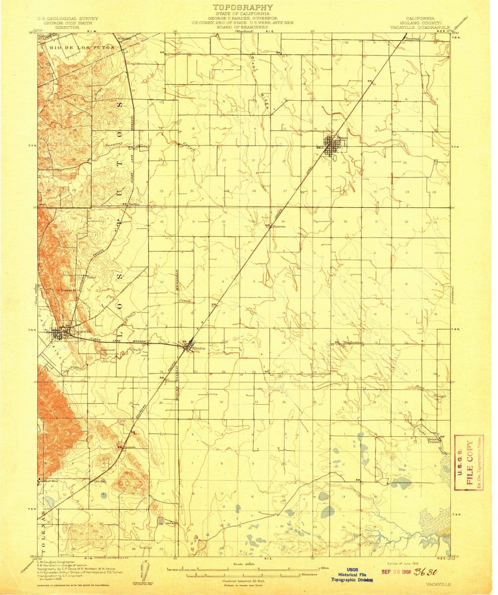 1908 Vacaville, CA - California - USGS Topographic Map