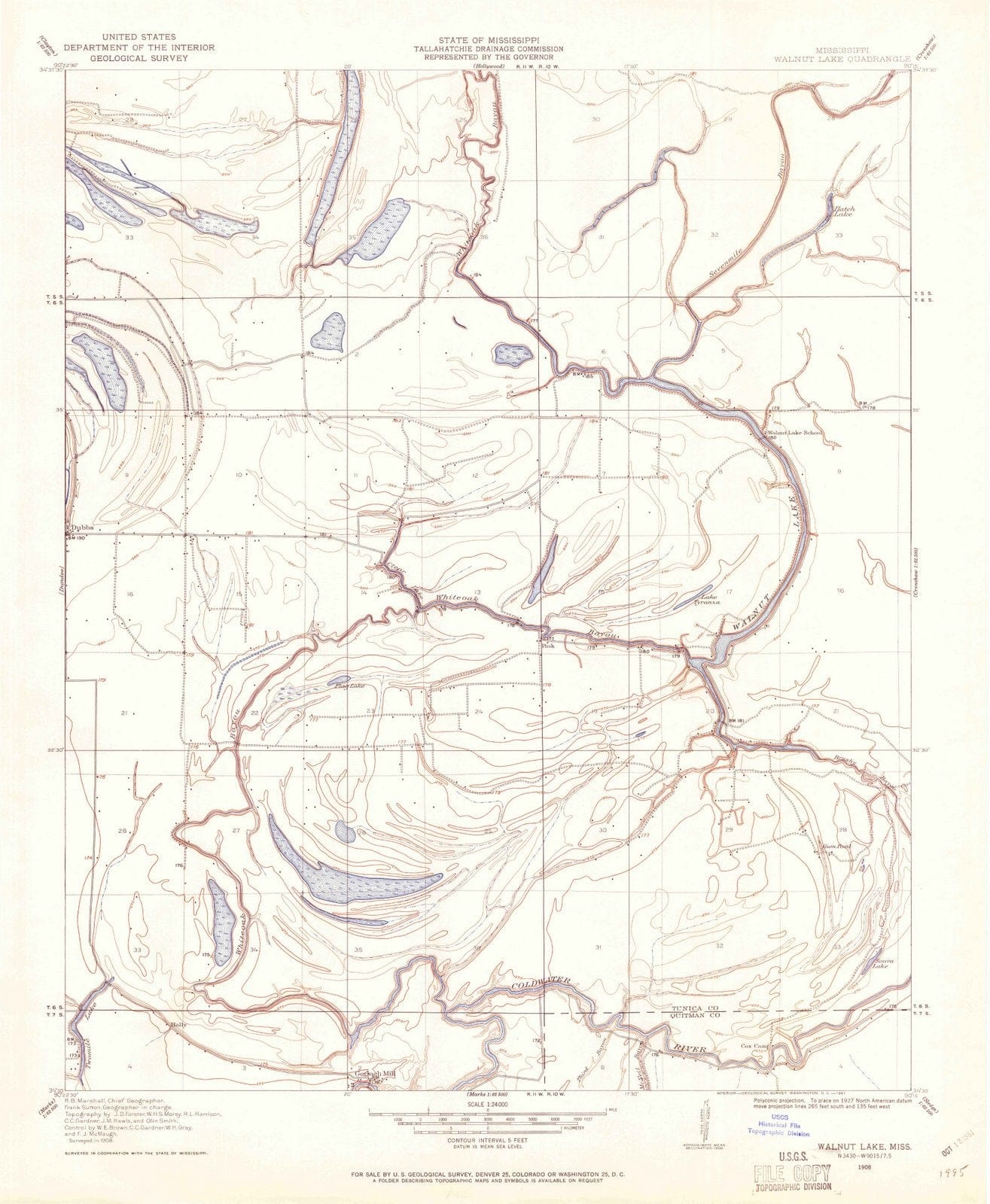 1908 Walnut Lake, MS - Mississippi - USGS Topographic Map