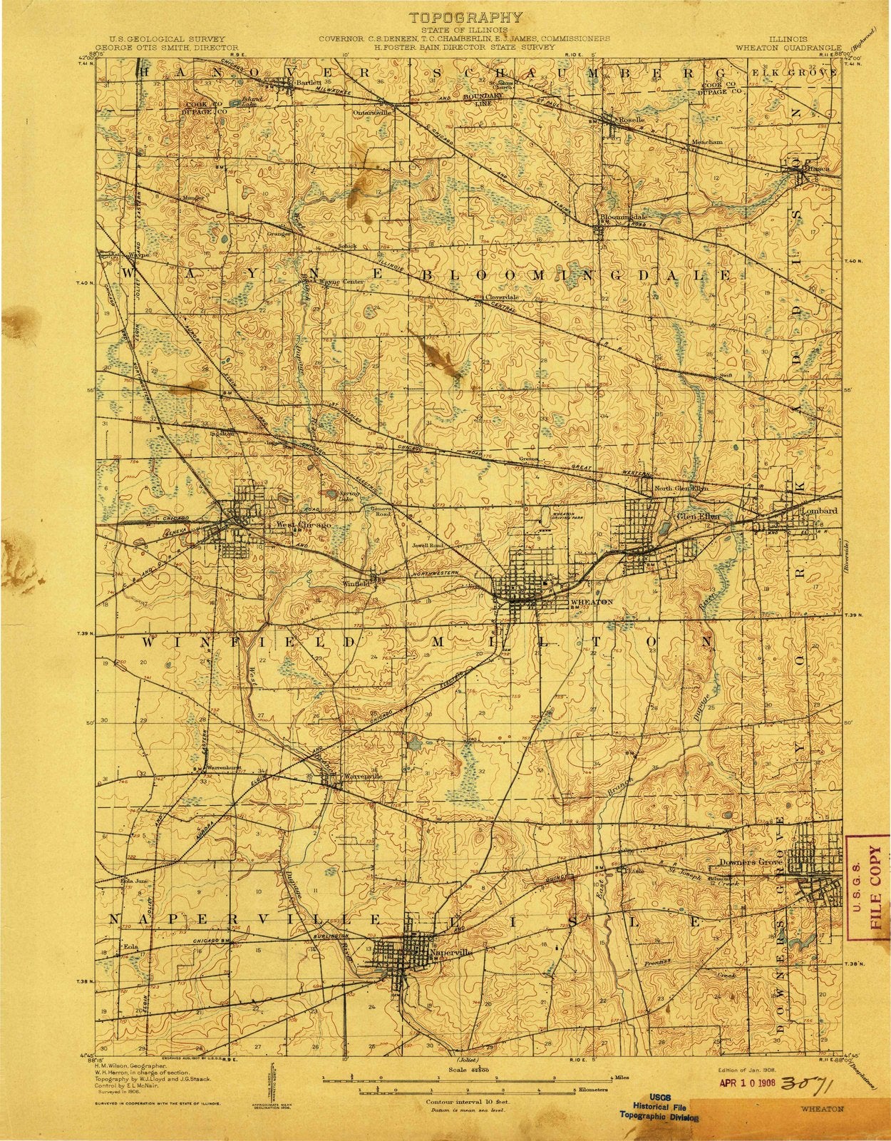 1908 Weaton, IL - Illinois - USGS Topographic Map