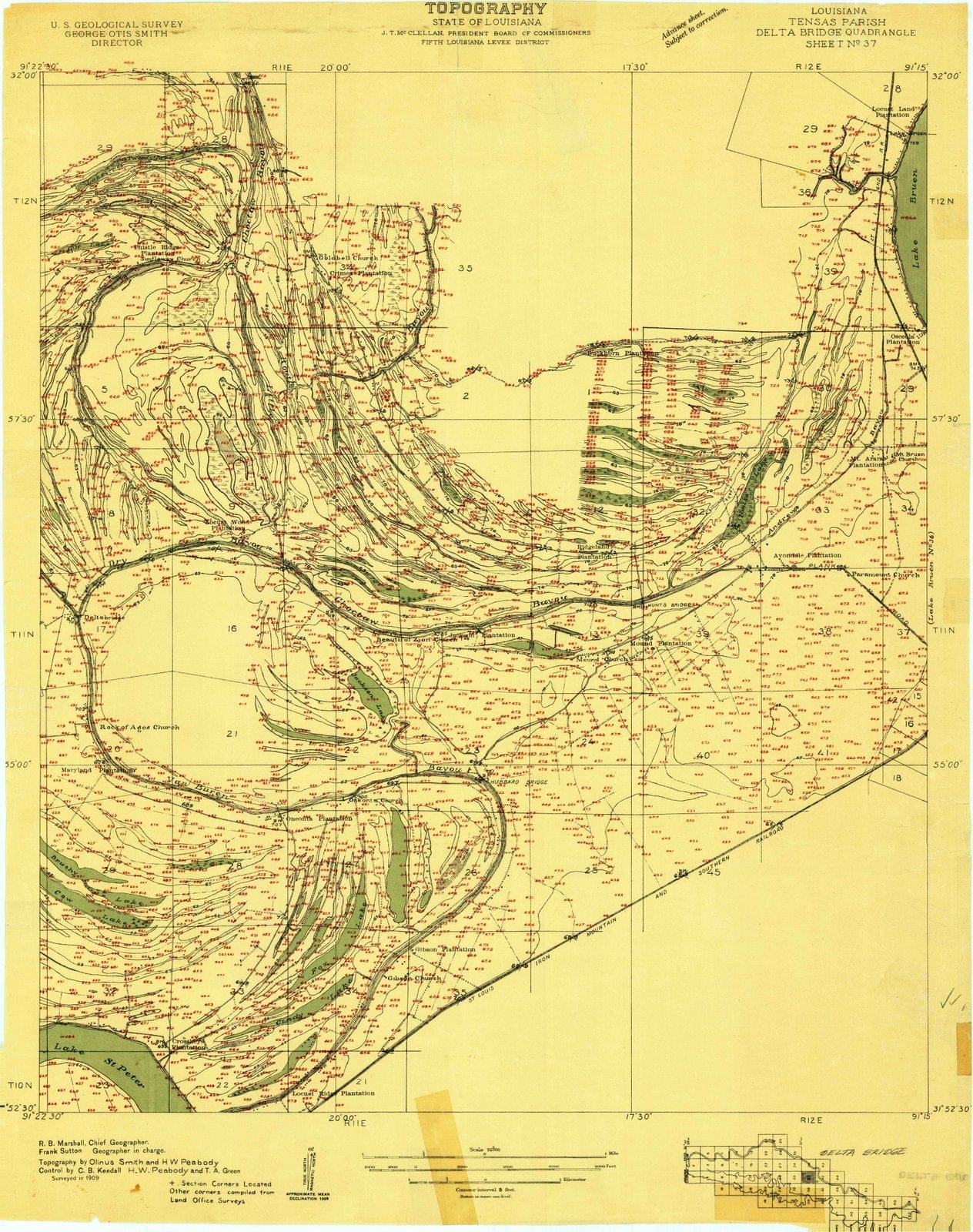 1909 Delta Bridge, LA - Louisiana - USGS Topographic Map