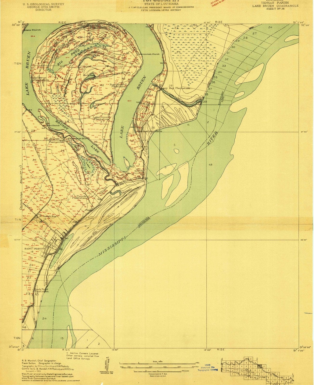 1909 Lake Bruen, LA - Louisiana - USGS Topographic Map