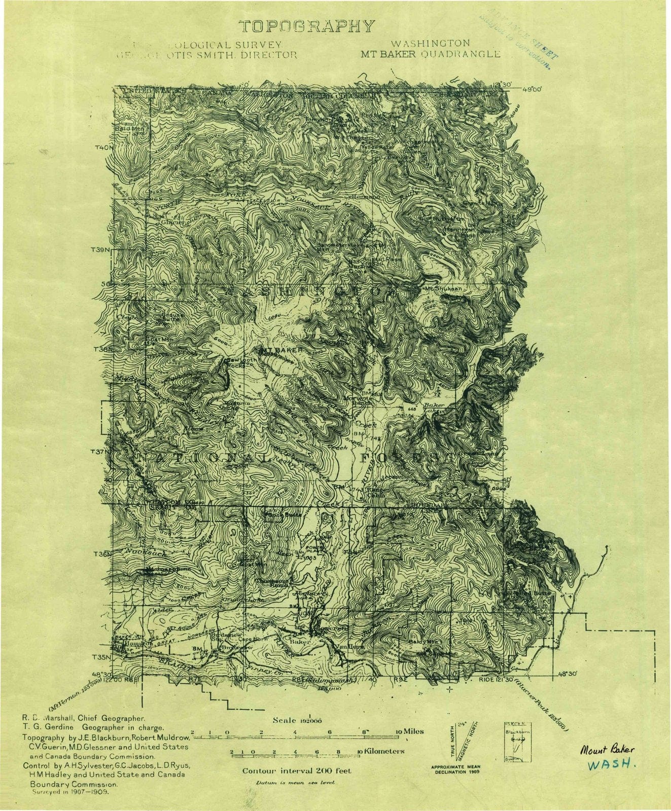 • 1909 Mt Baker, WA - Washington - USGS Topographic Map