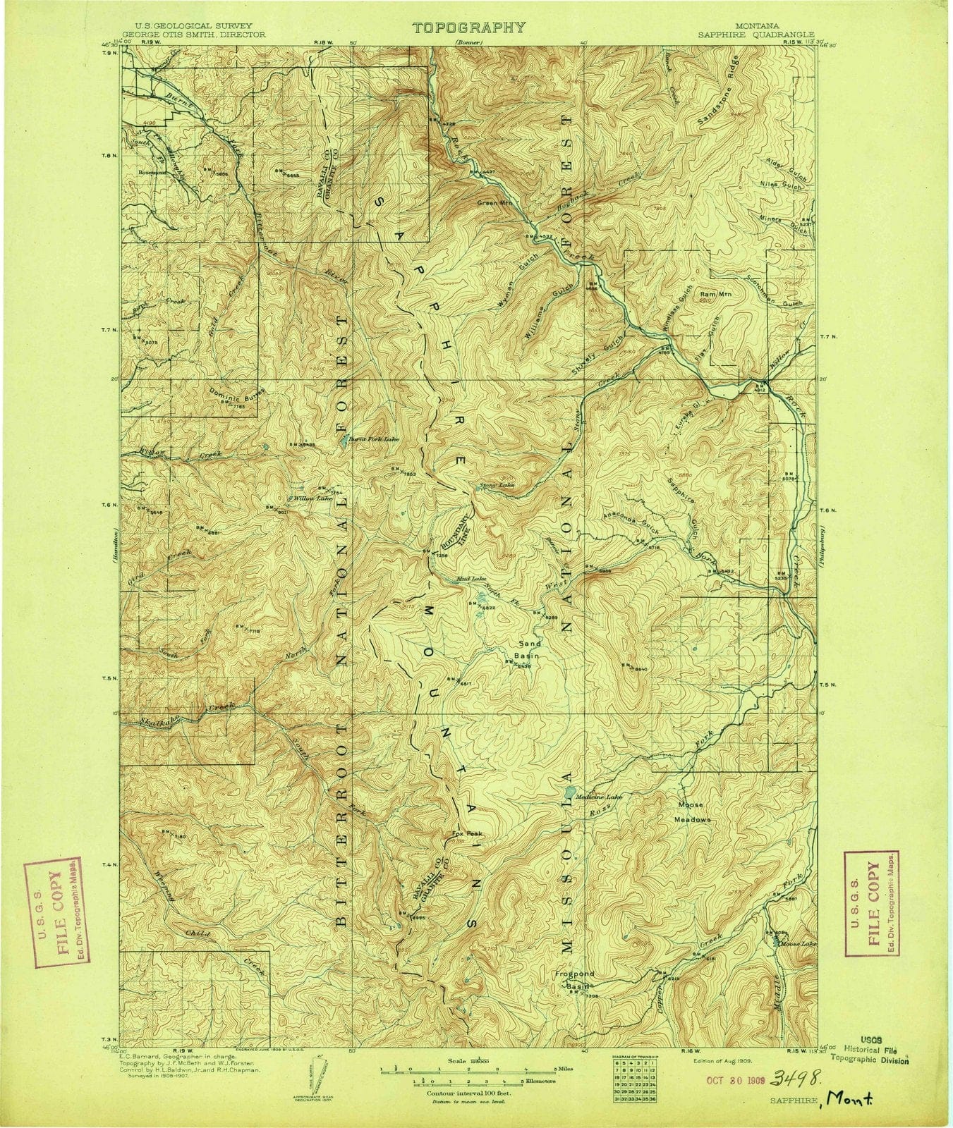 1909 Sapphire, MT - Montana - USGS Topographic Map