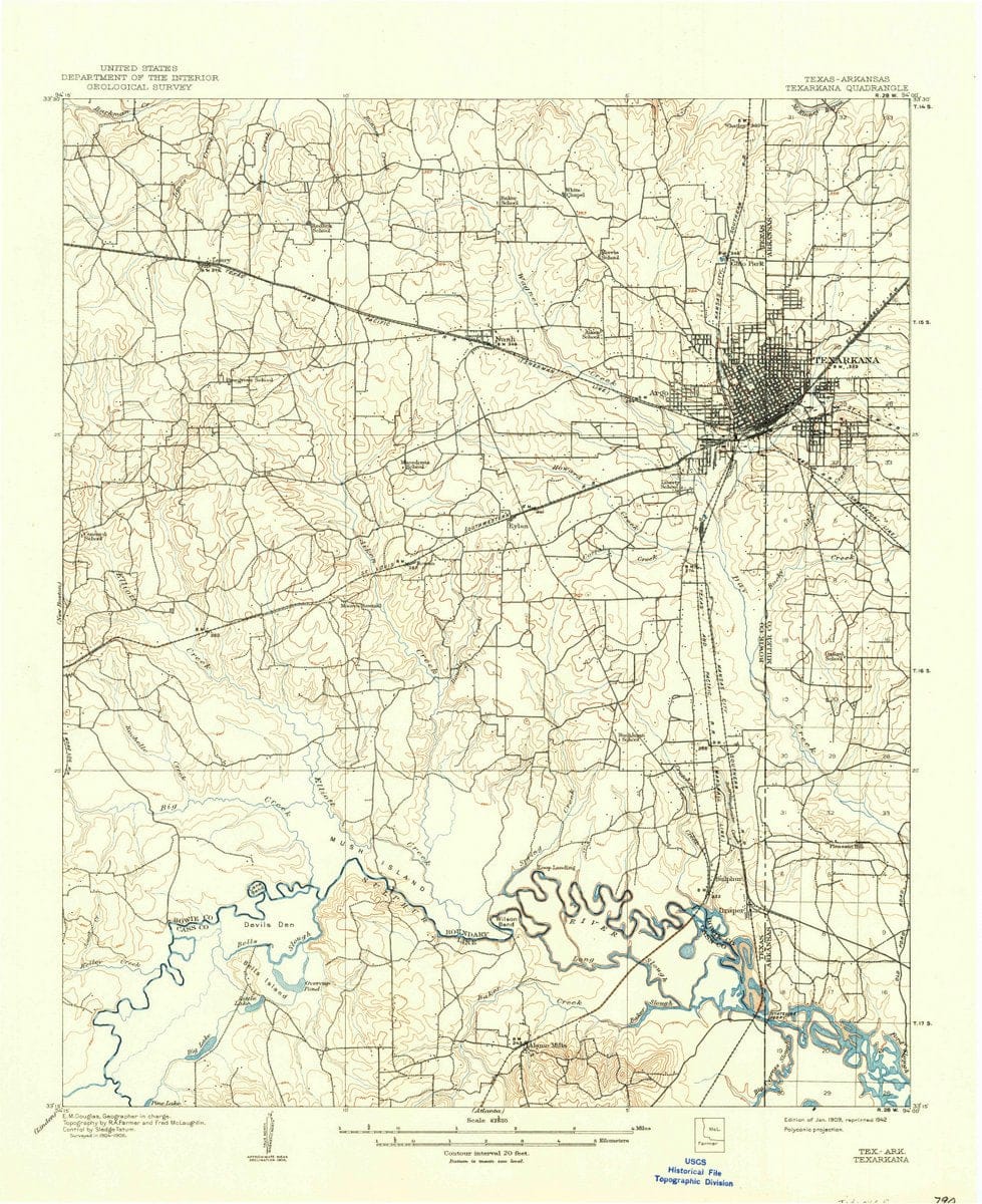 • 1909 Texarkana, TX  - Texas - USGS Topographic Map