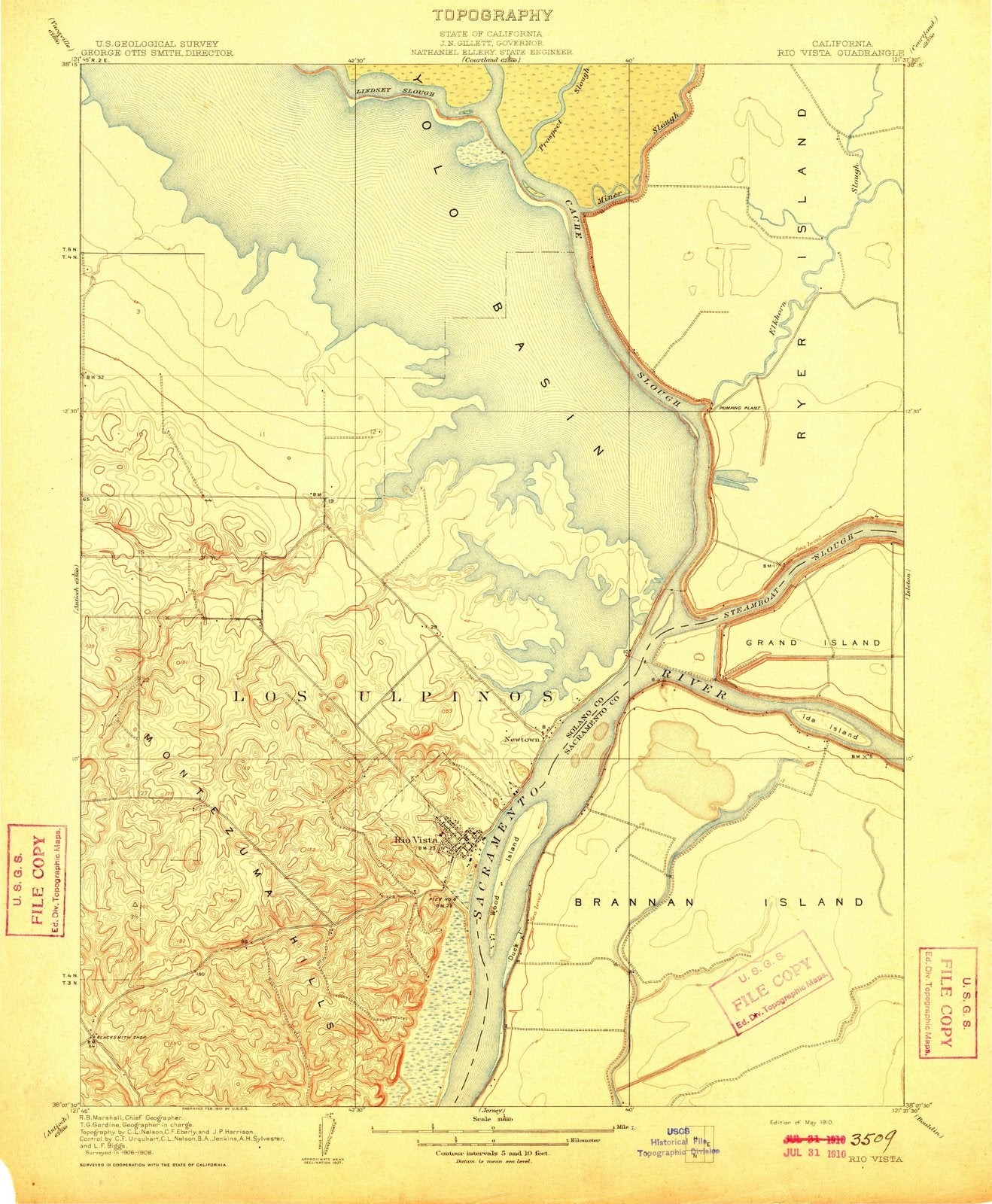1910 Rio Vista, CA - California - USGS Topographic Map