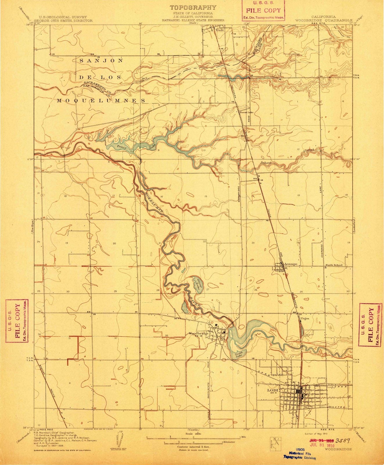 • .1910 Woodbridge, CA - California - USGS Topographic Map