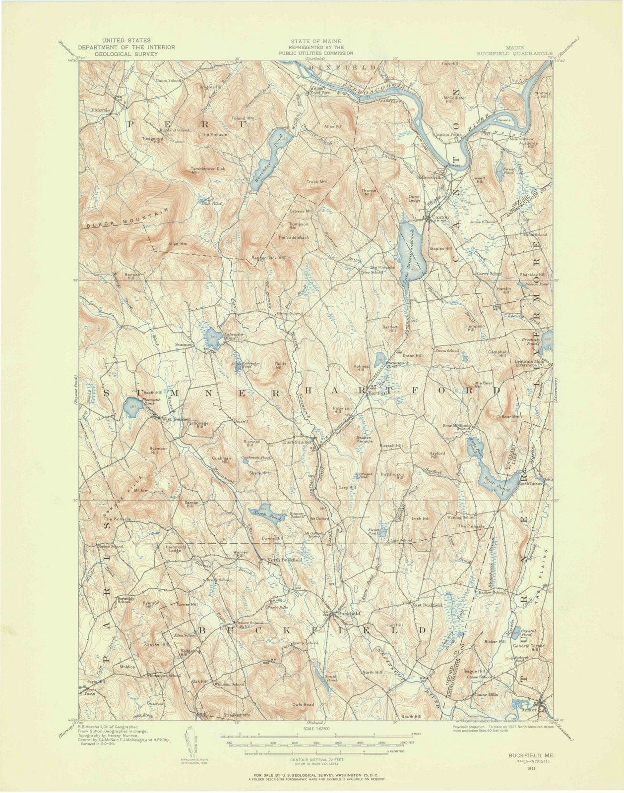 1911 Buckfield, ME - Maine - USGS Topographic Map