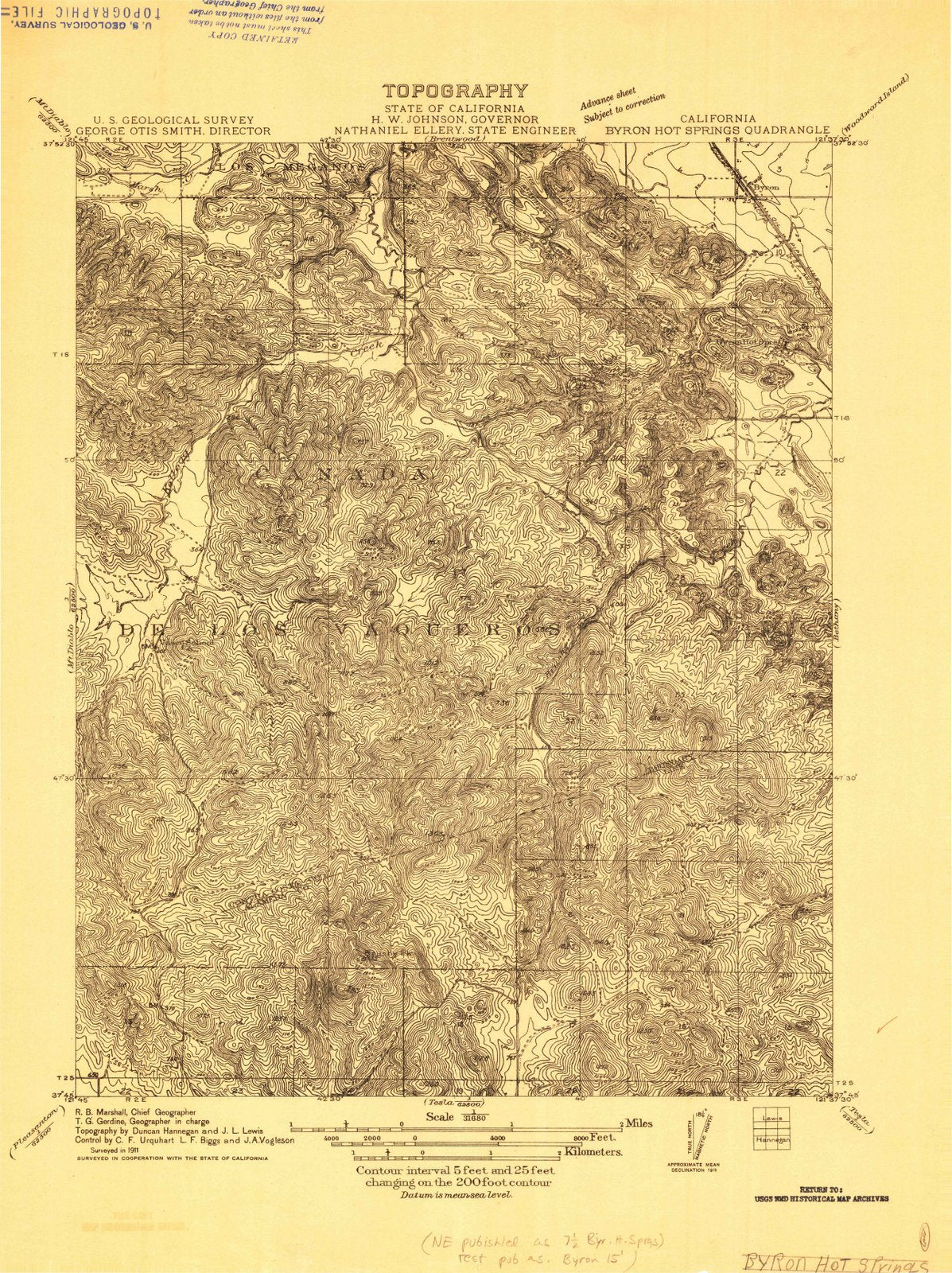 1911 Byron Hot Springs, CA - California - USGS Topographic Map