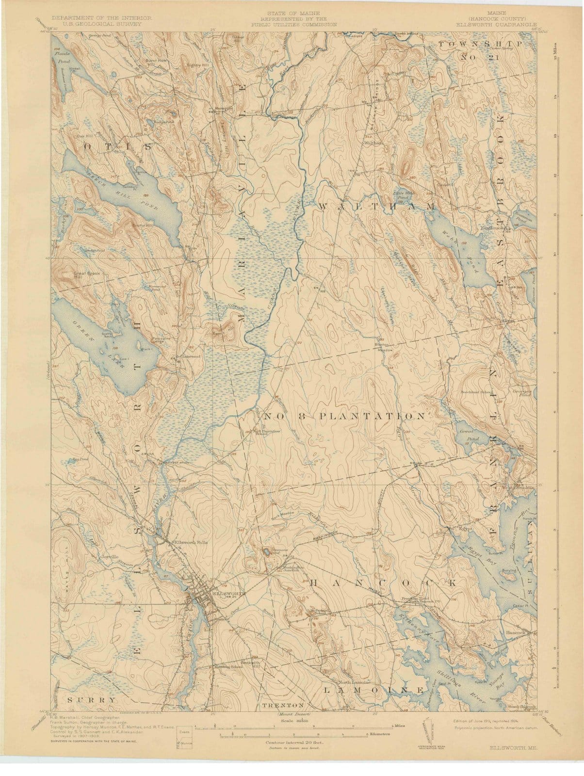 • 1911 Ellsworth, ME - Maine - USGS Topographic Map