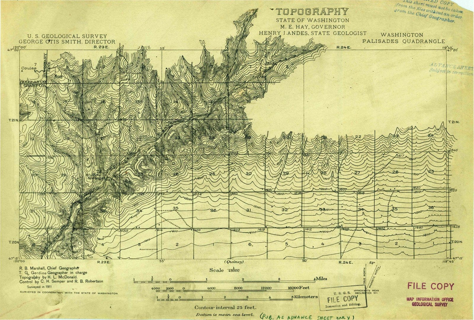 1911 Palisades, WA - Washington - USGS Topographic Map