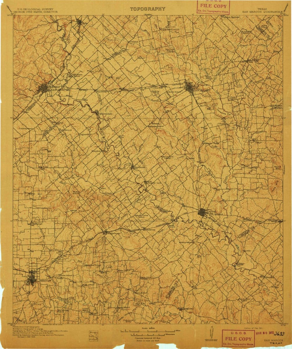 1911 San Marcos, TX - Texas - USGS Topographic Map