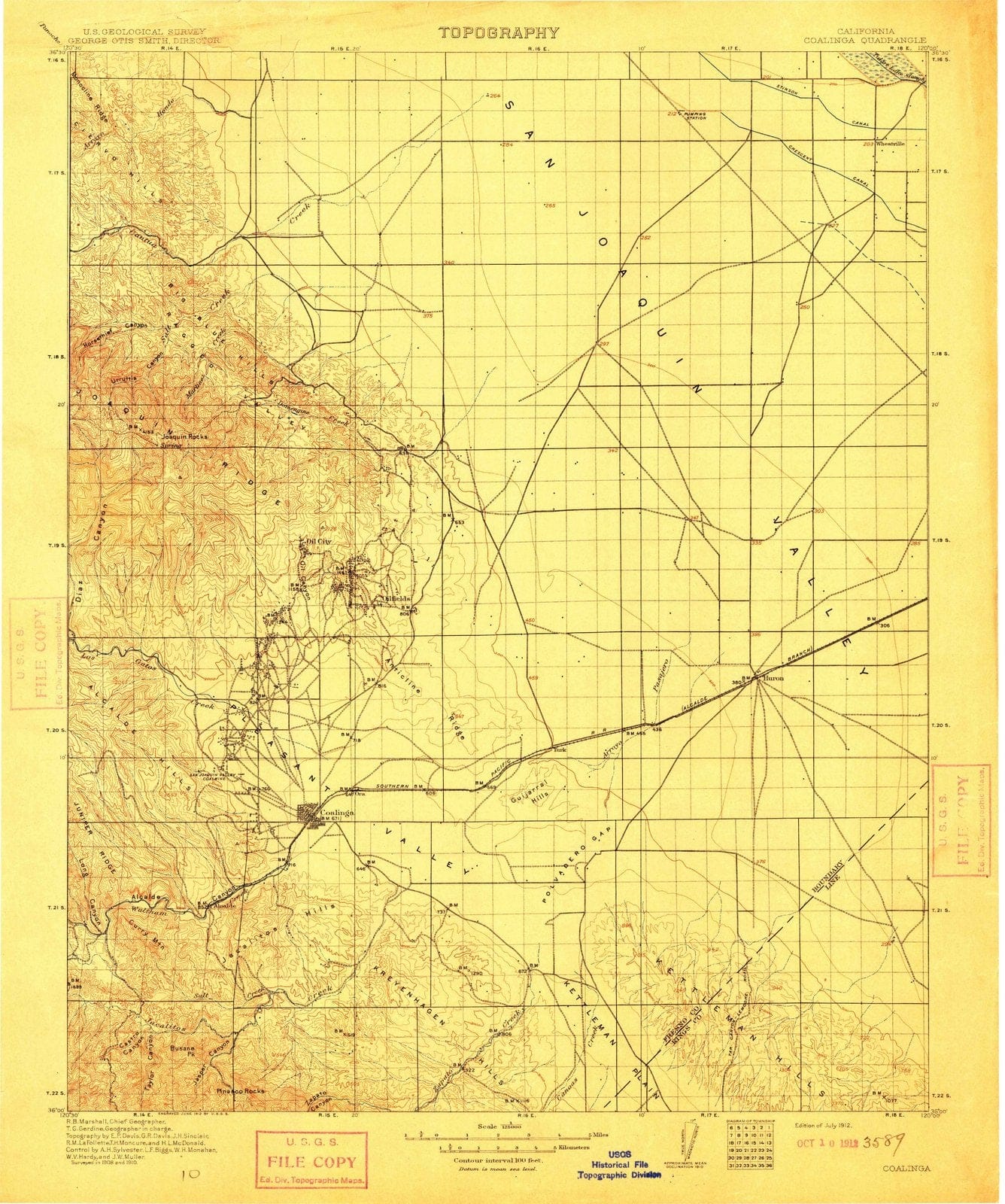 • 1912 Coalinga, CA - California - USGS Topographic Map