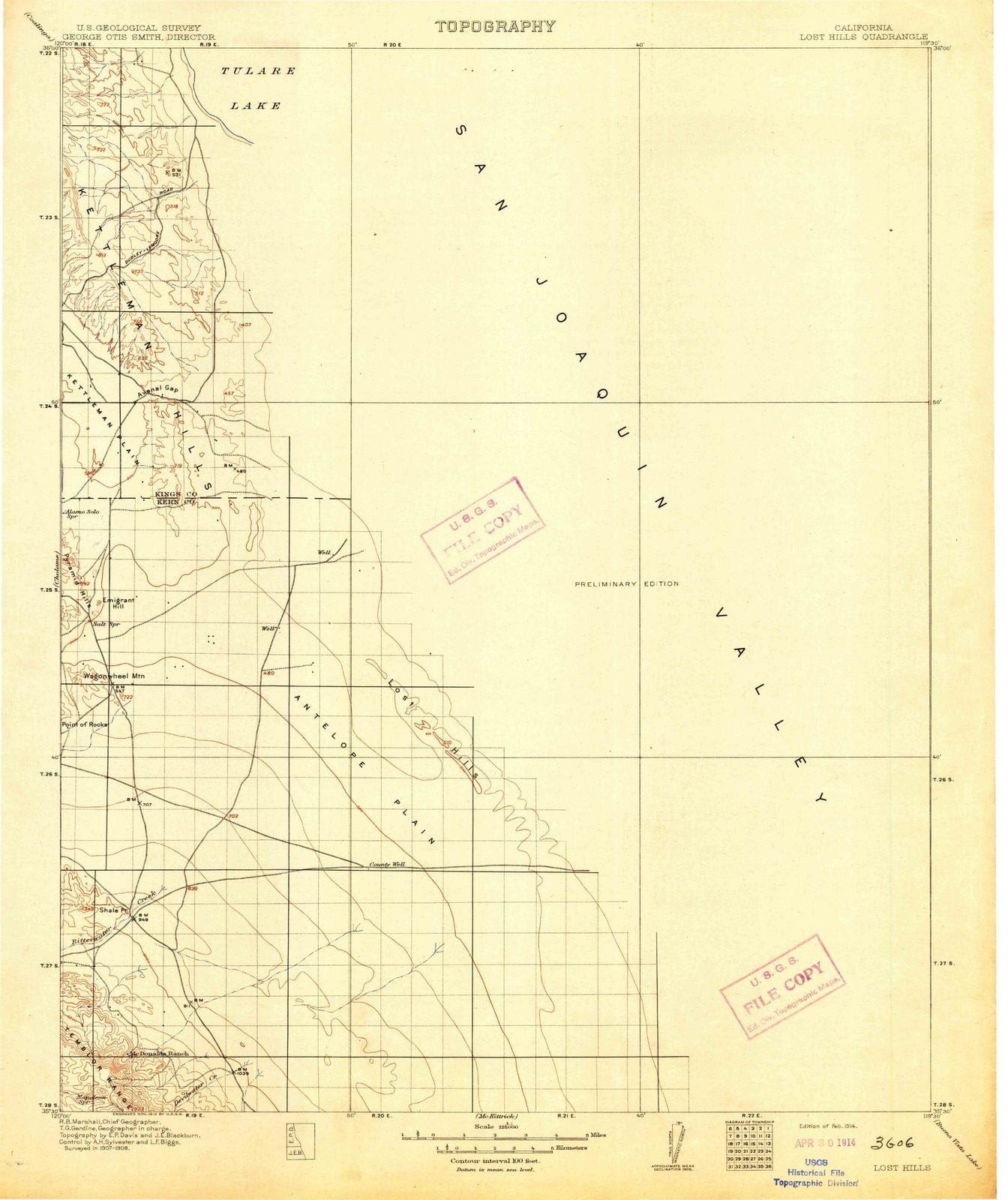 1914 Lost Hills, CA - California - USGS Topographic Map