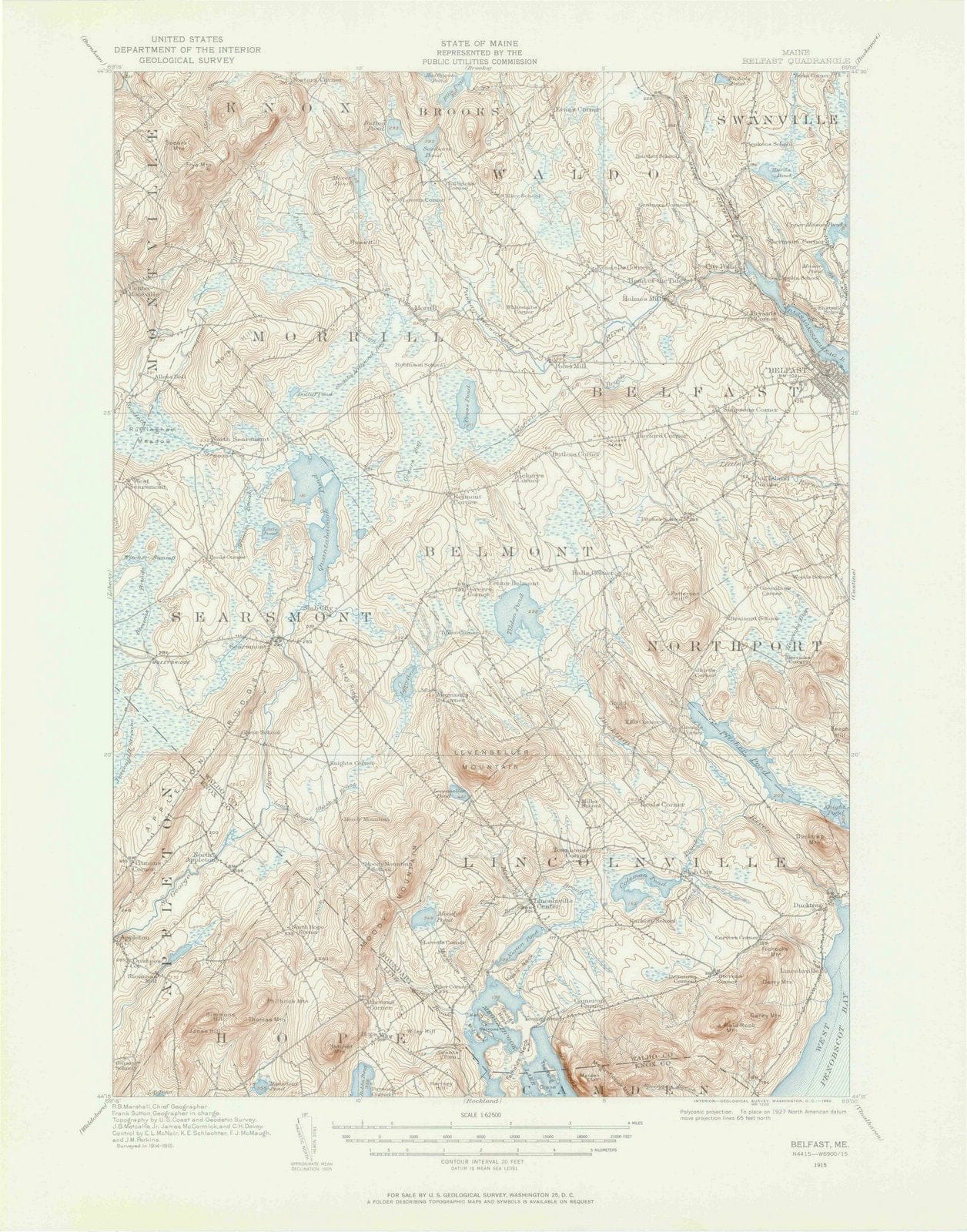 1915 Belfast, ME - Maine - USGS Topographic Map