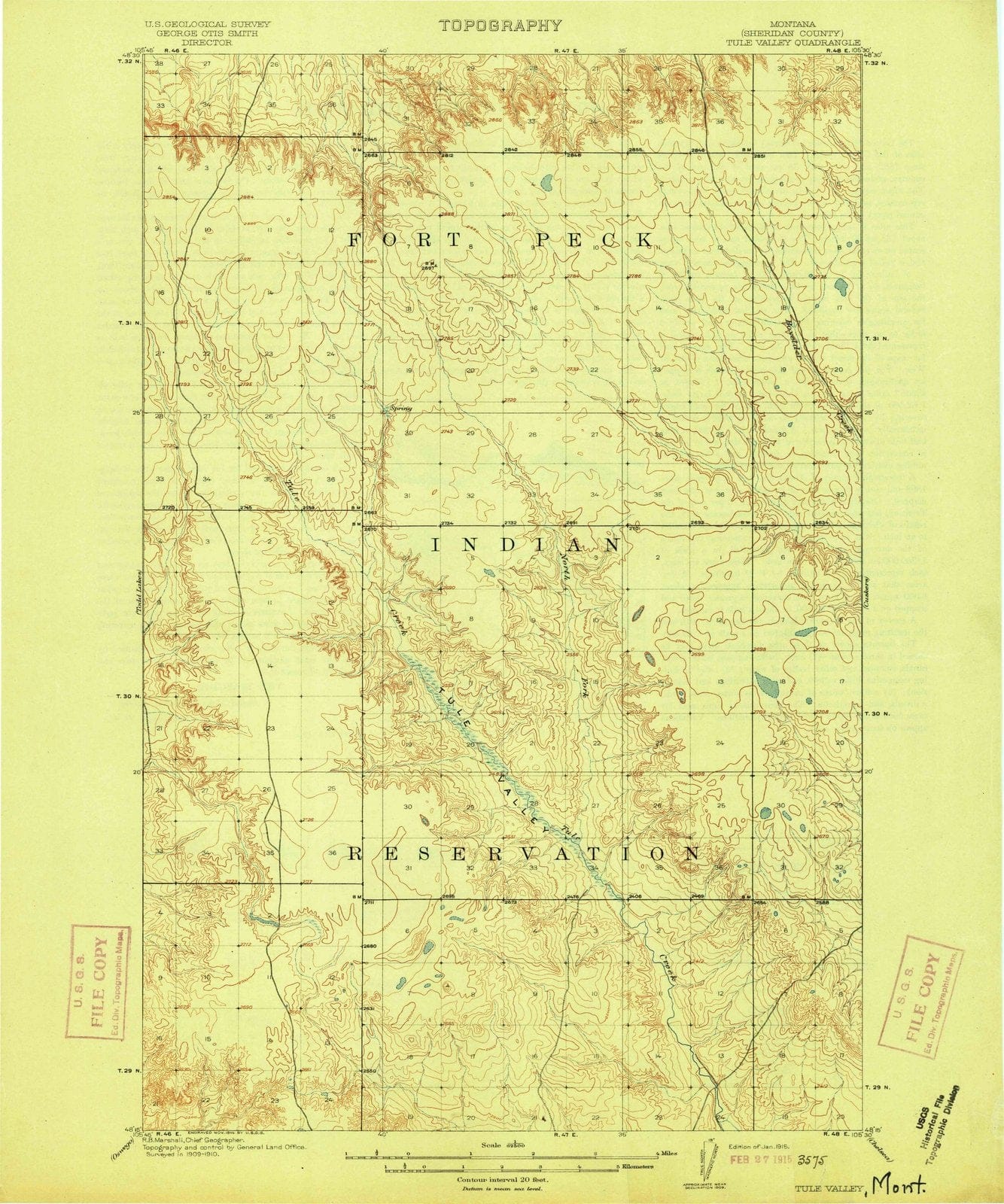 • 1915 Tule Valley, MT - Montana - USGS Topographic Map