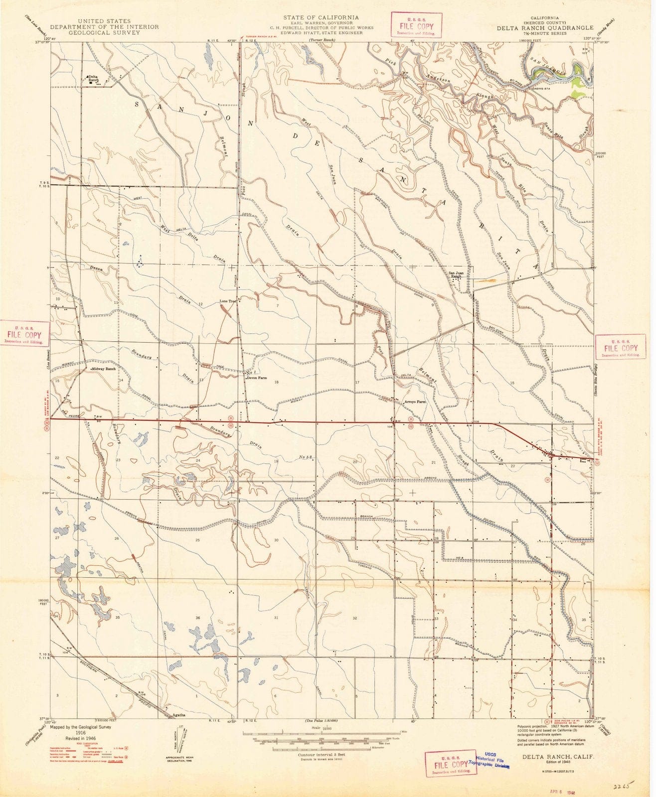1916 Delta Ranch, CA - California - USGS Topographic Map