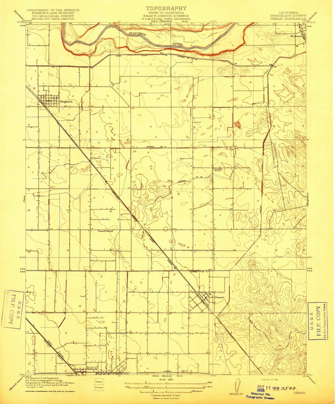 1916 Denair, CA - California - USGS Topographic Map