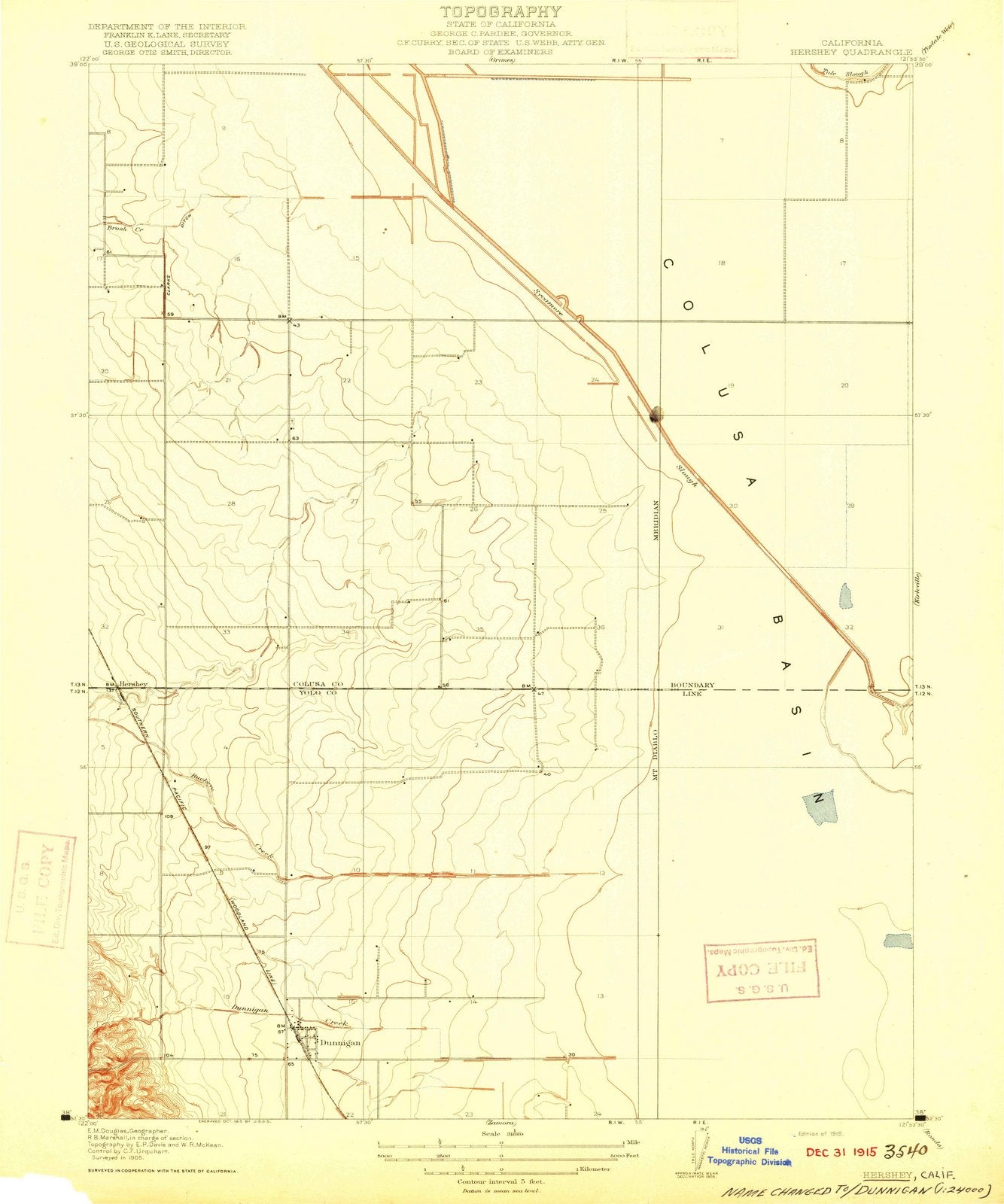 • .1916 Hershey, CA - California - USGS Topographic Map
