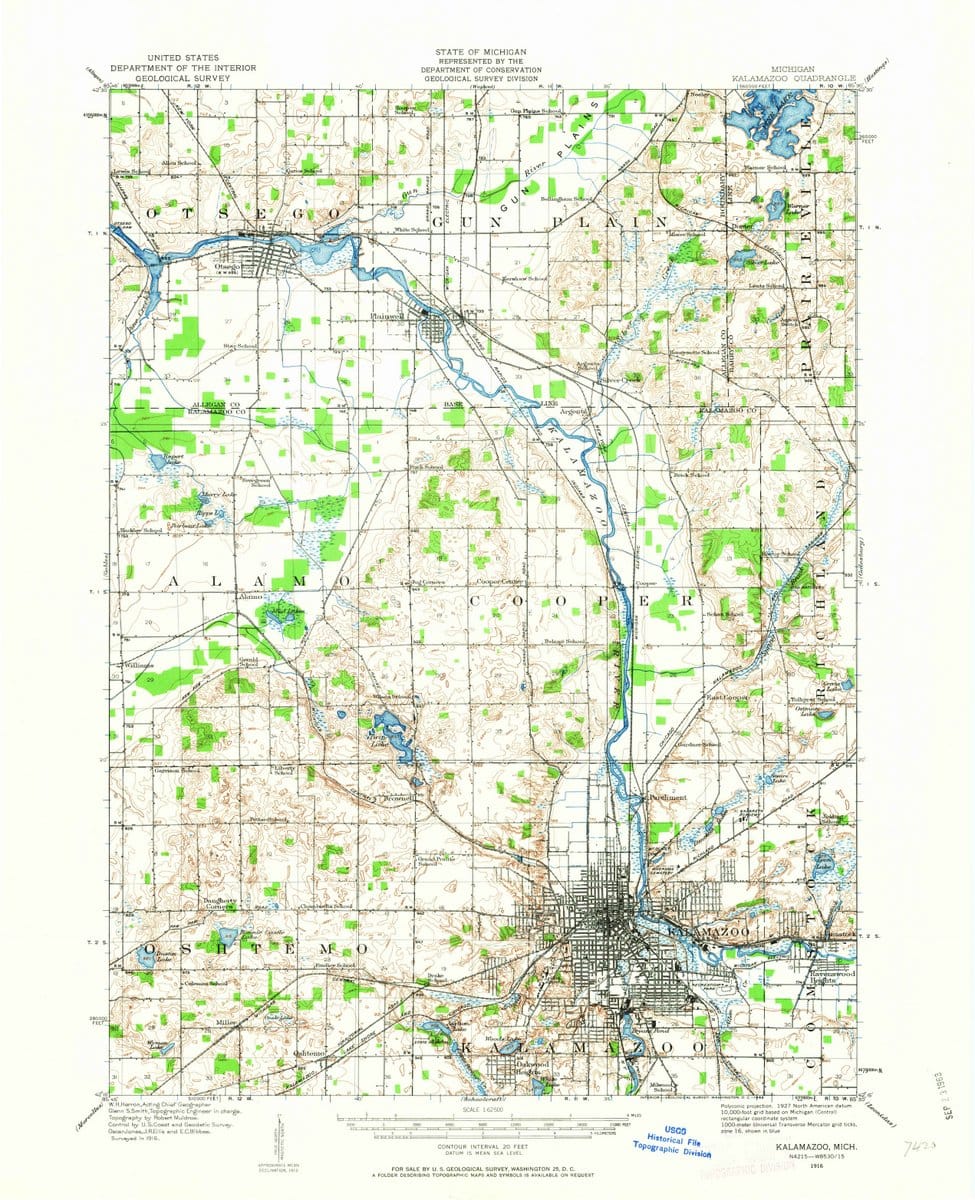 • 1916 Kalamazoo, MI  - Michigan - USGS Topographic Map