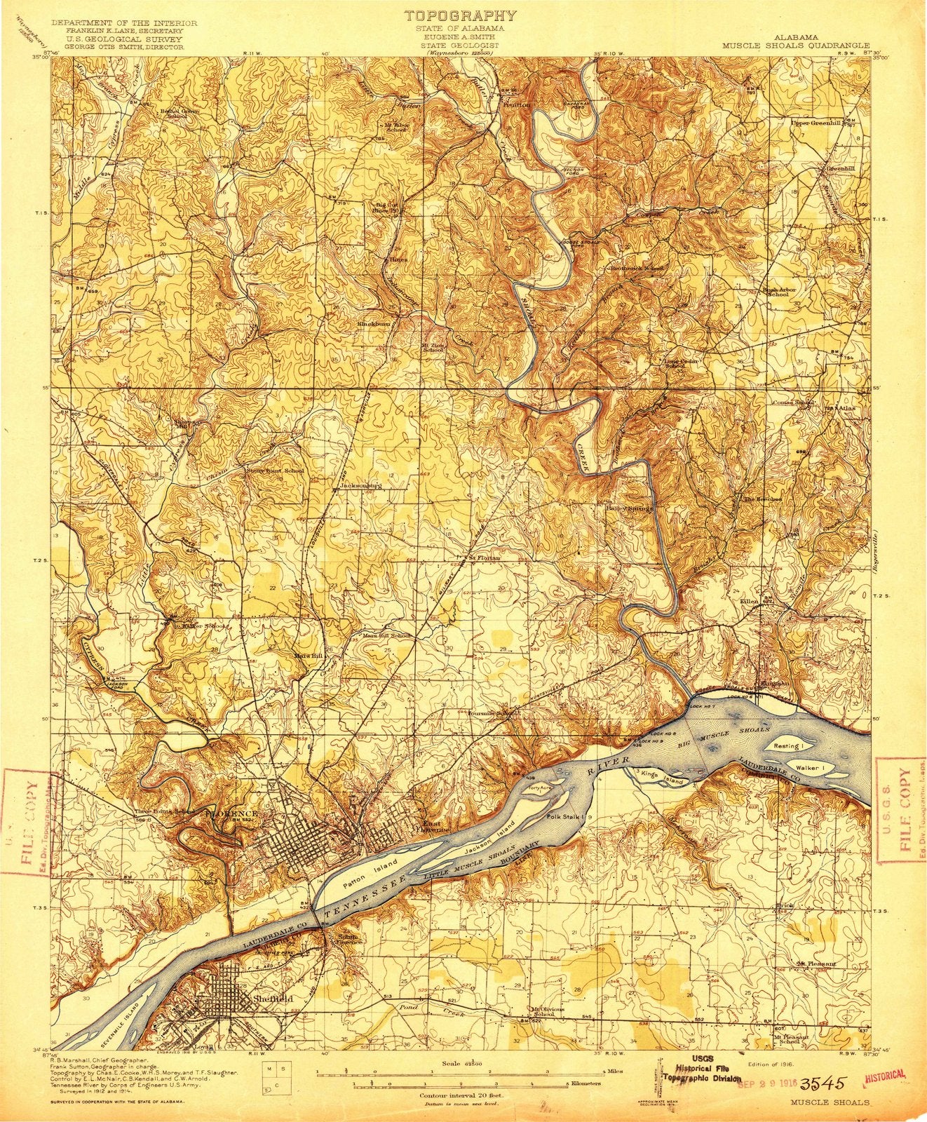 1916 Muscle Shoals, AL - Alabama - USGS Topographic Map