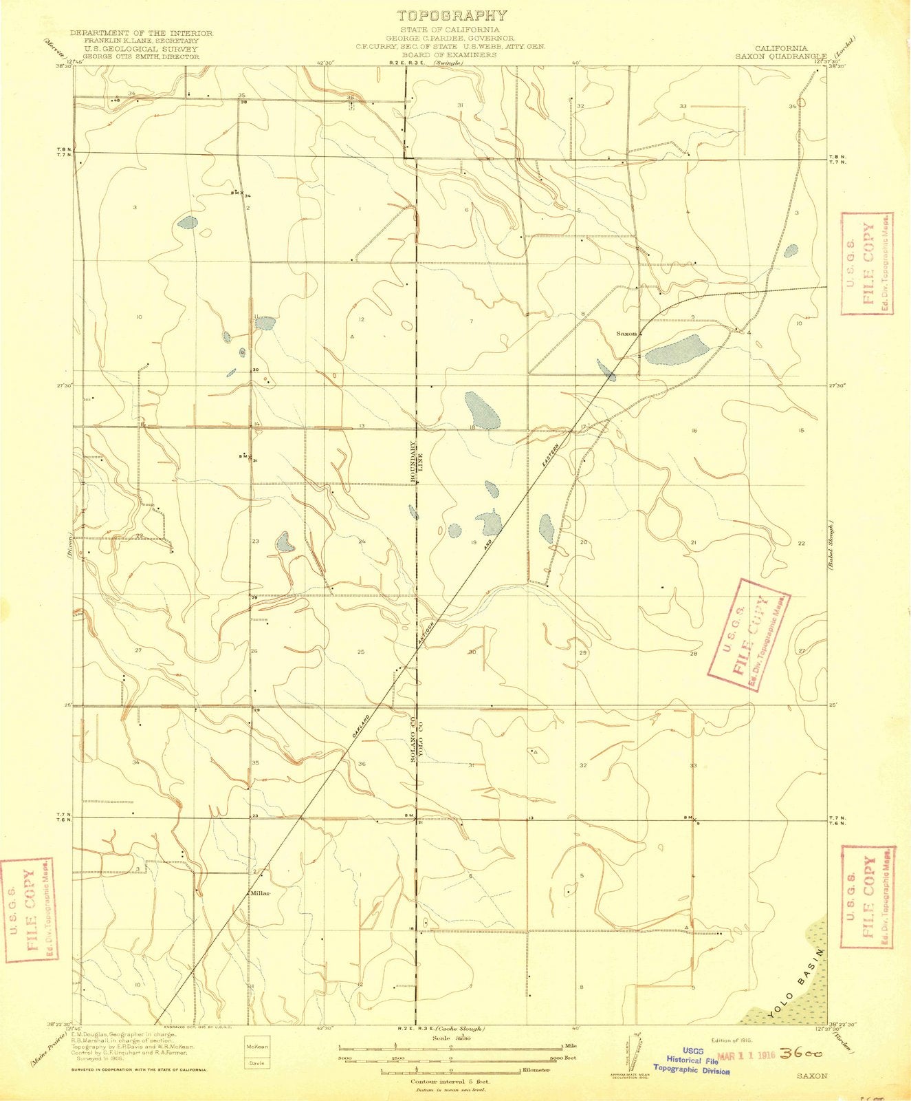 1916 Saxon, CA - California - USGS Topographic Map