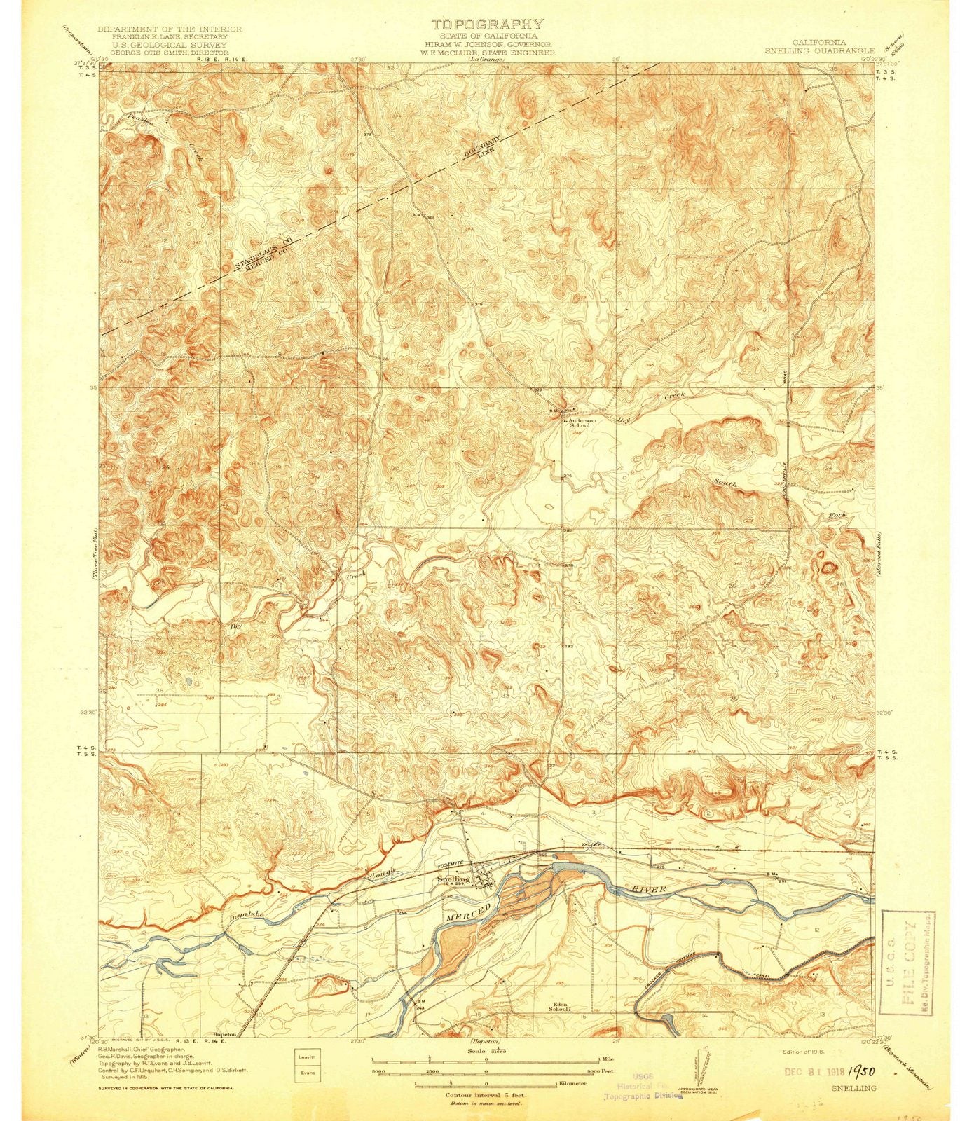 • 1918 Snelling, CA - California - USGS Topographic Map