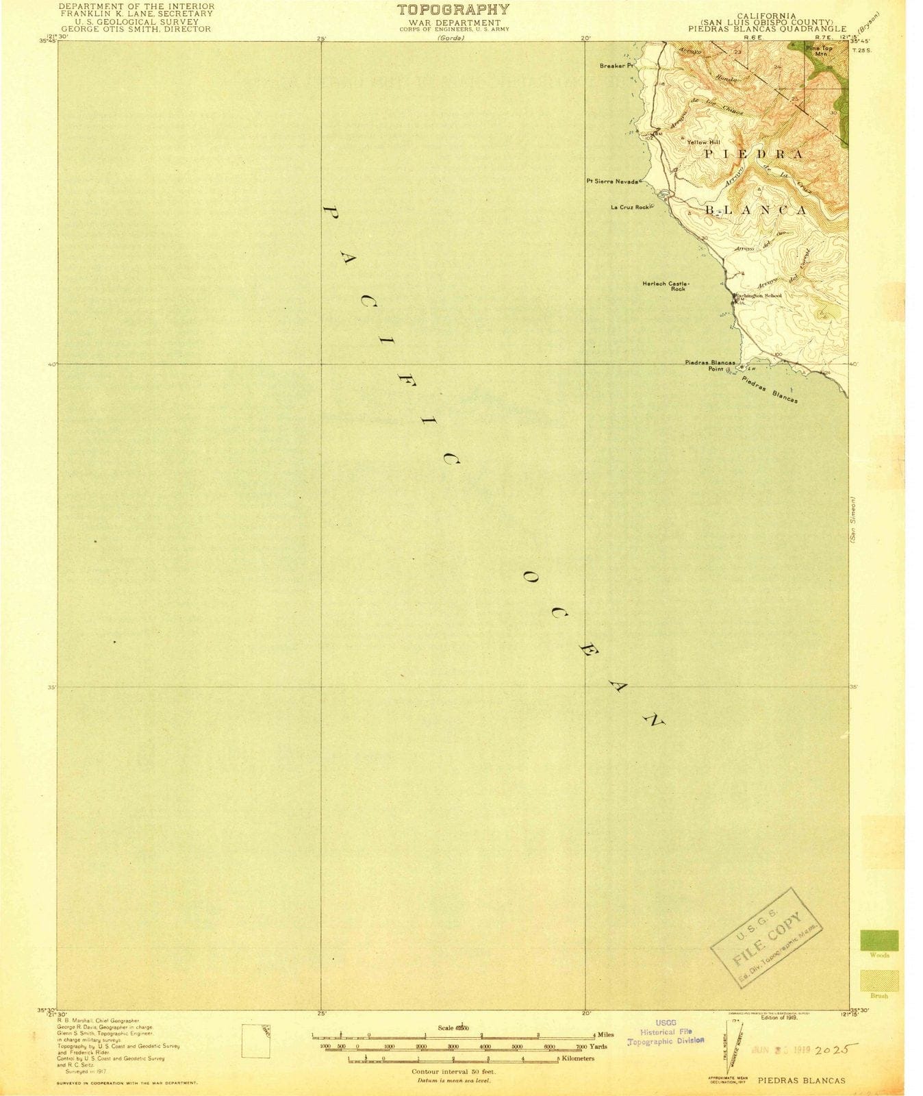 • 1919 Piedras Blancas, CA - California - USGS Topographic Map