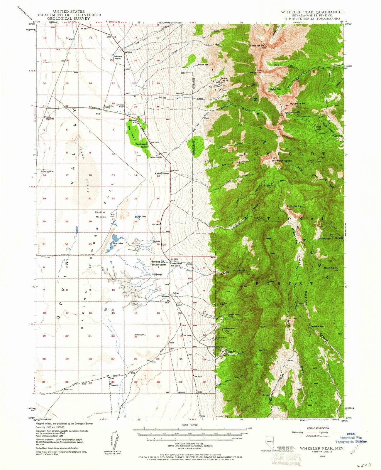 1948 Wheeler Peak, NV - Nevada - USGS Topographic Map