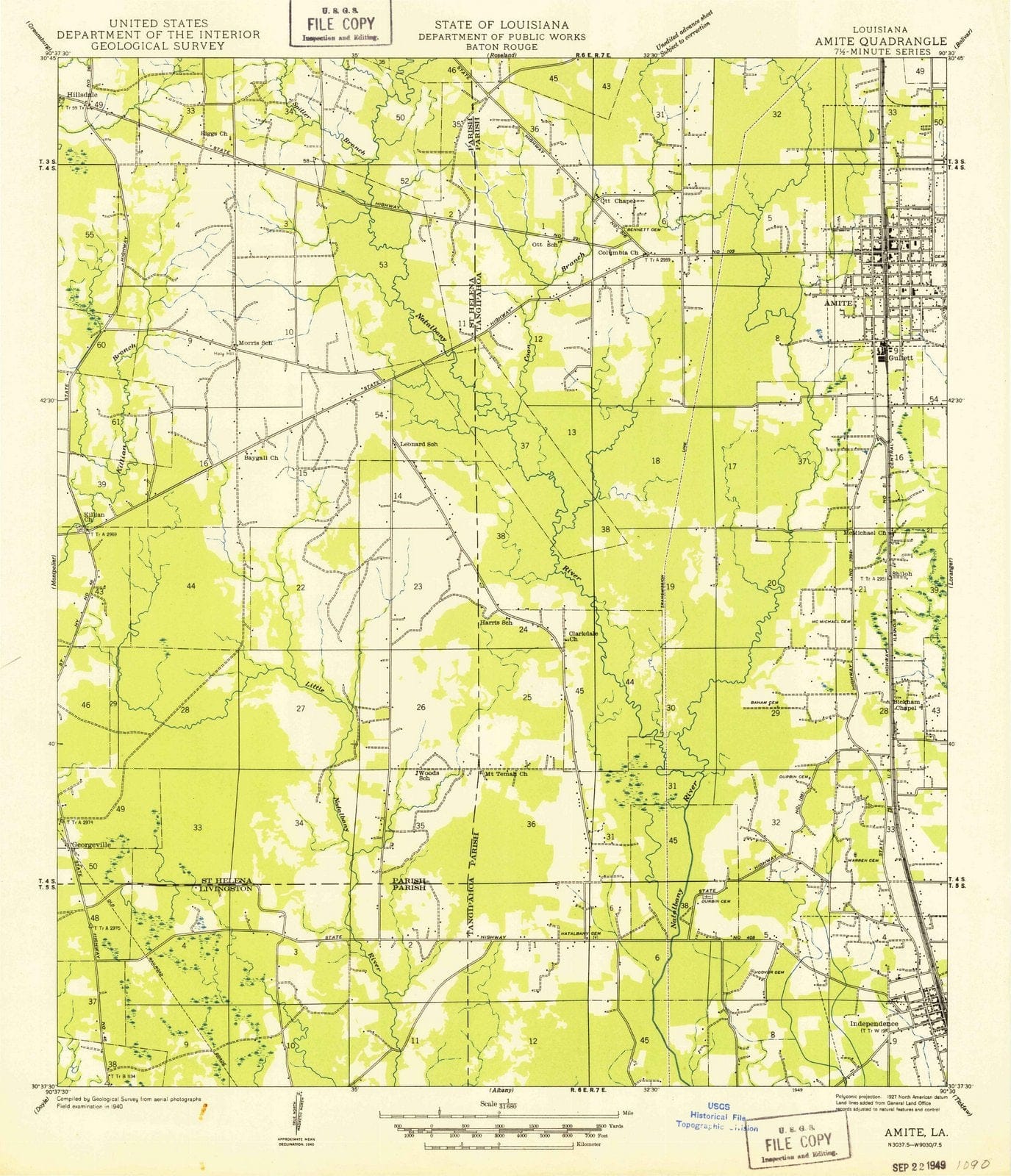 1949 Amite, LA - Louisiana - USGS Topographic Map