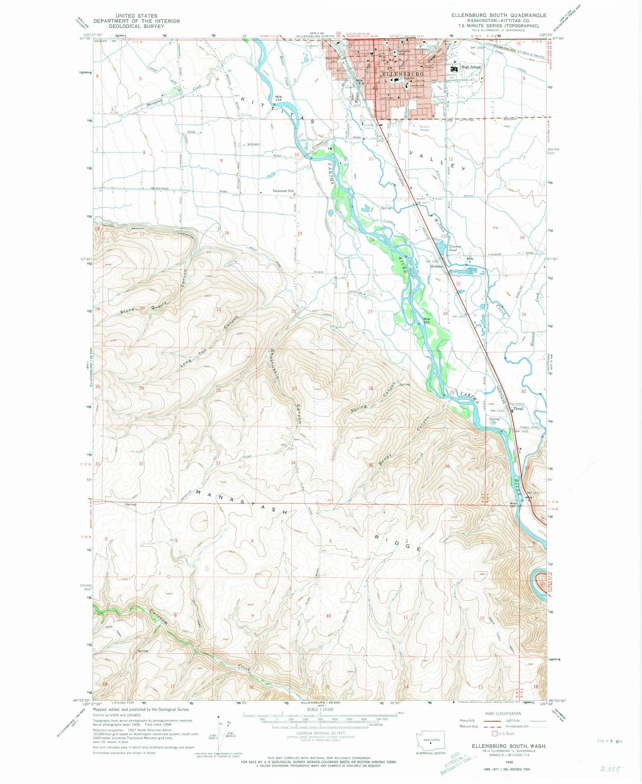 1958 Ellensburg South, WA - Washington - USGS Topographic Map